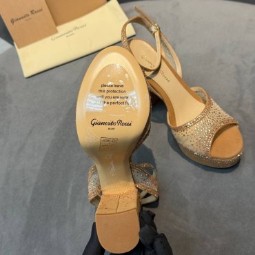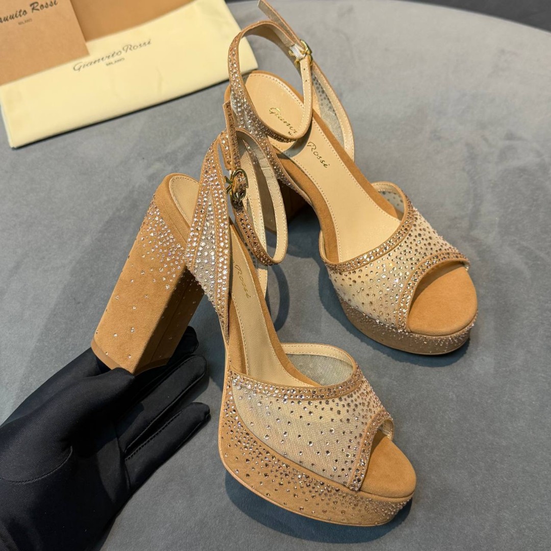 Женские комбинированные босоножки Gianvito Rossi бежевые в стразах каблук 11 см 2026