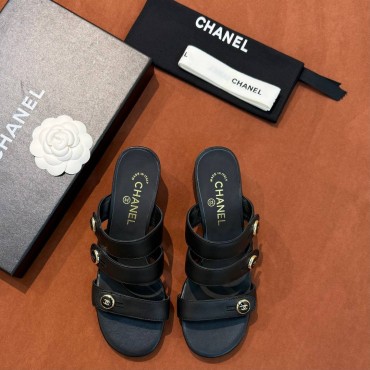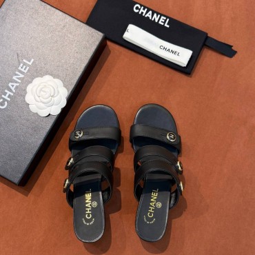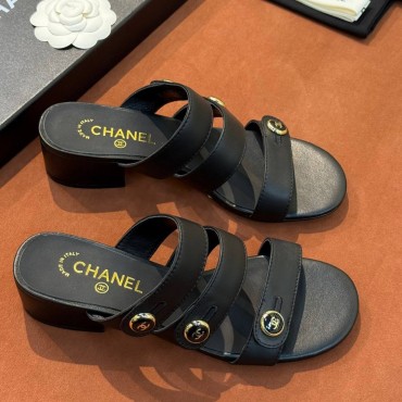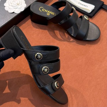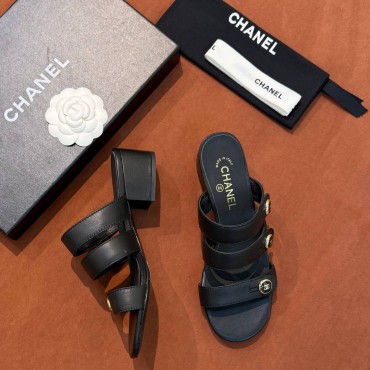 Женские кожаные босоножки Chanel черные 2026