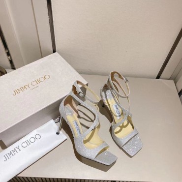 Женские кожаные босоножки Jimmy Choo 2024 серебристые в блестках