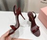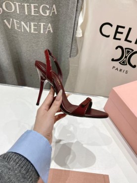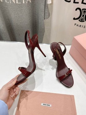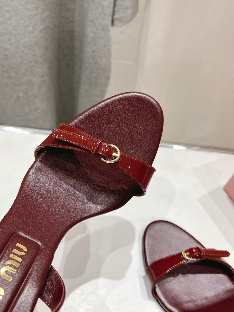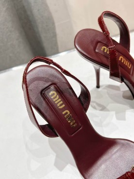 Женские кожаные босоножки Miu Miu бордовые лакированные каблук 10,5 см 2025