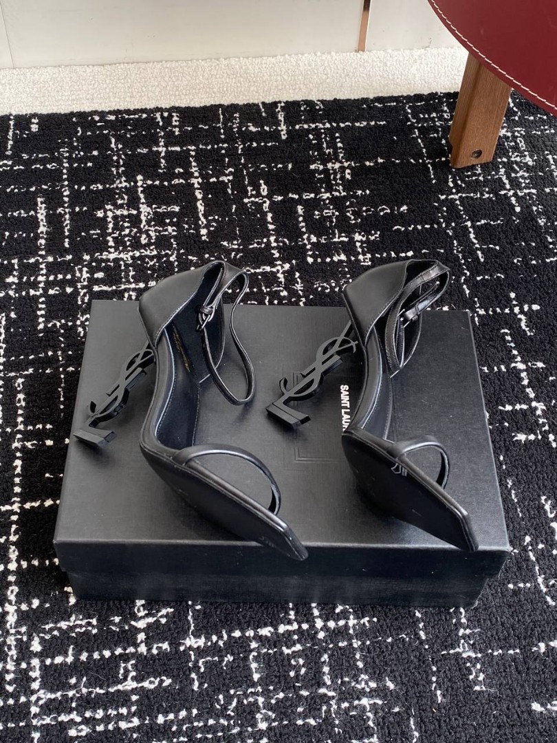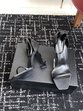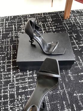 Женские кожаные босоножки Saint Laurent Opium черные каблук 11 см 2026