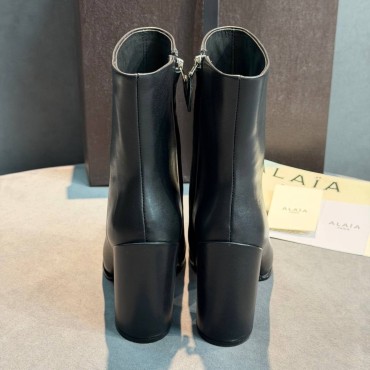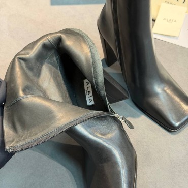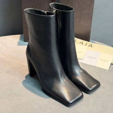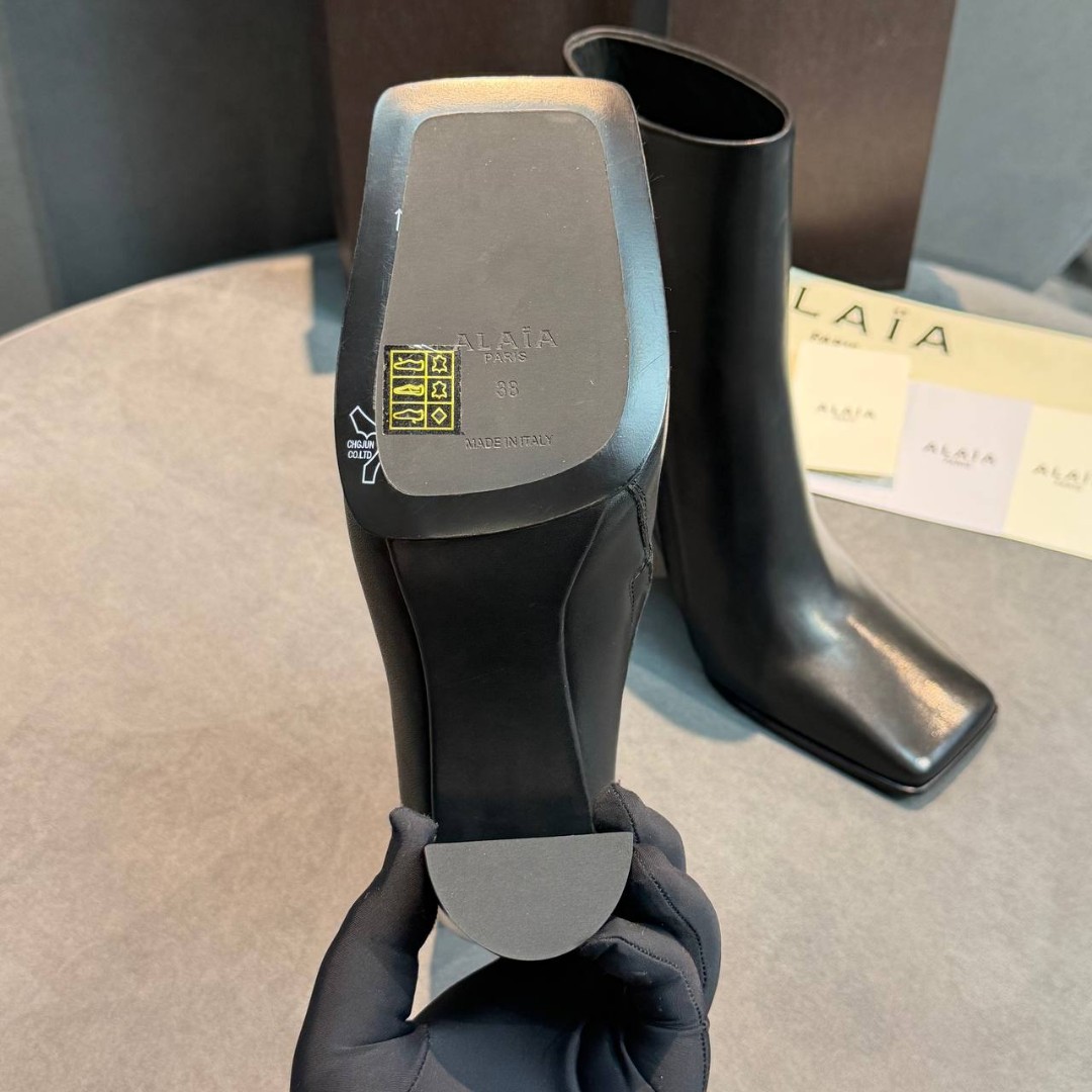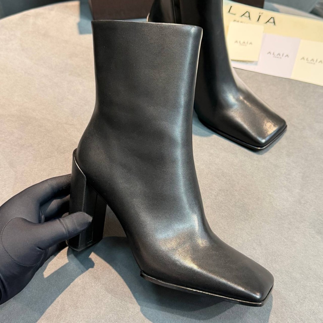 Женские кожаные ботильоны Alaia черные с квадратным носом каблук 10 см