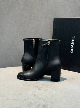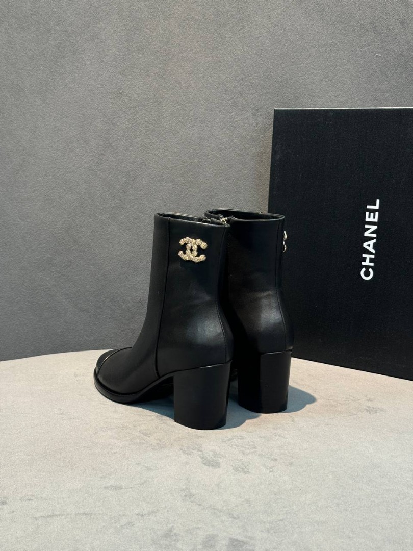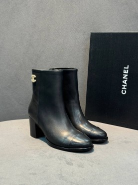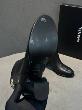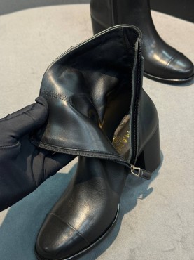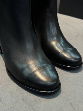 Женские кожаные ботильоны Chanel черные каблук 7 см 2025