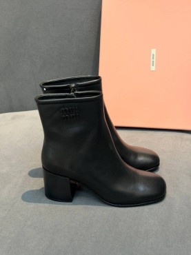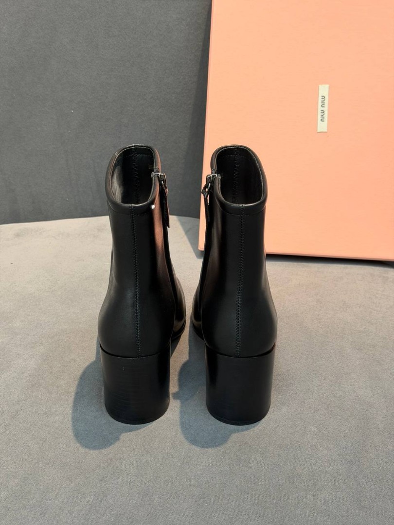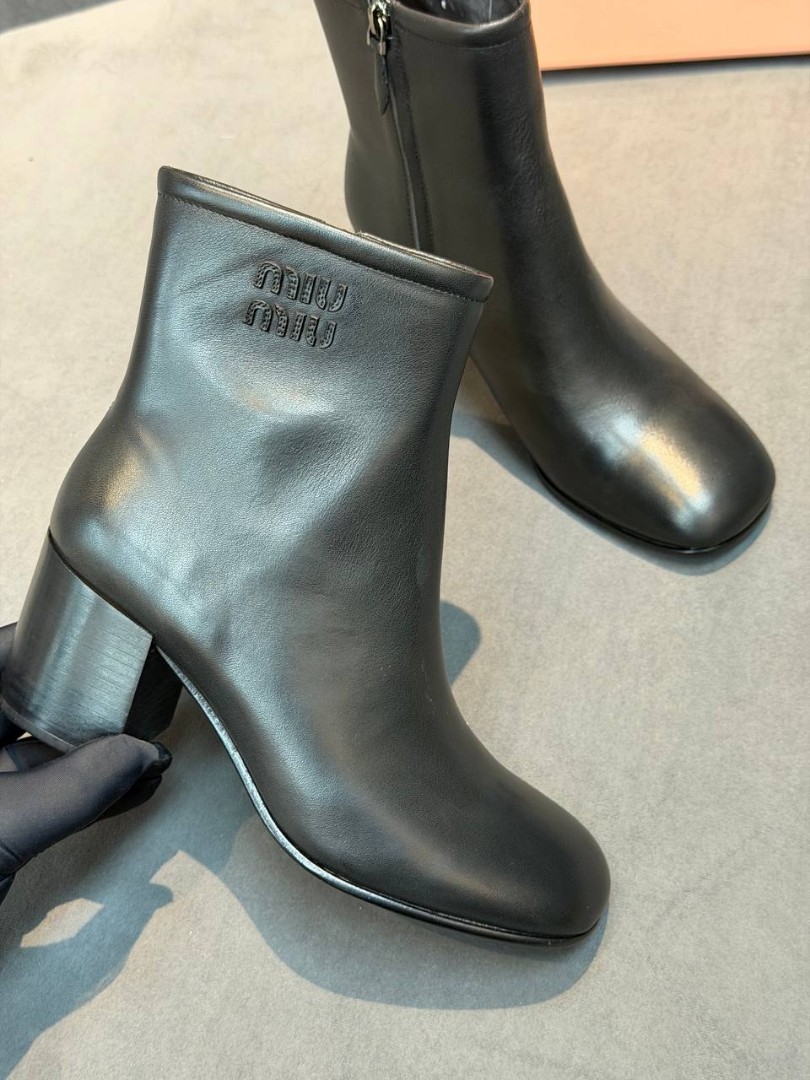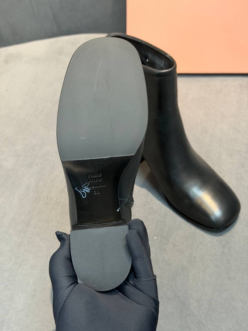 Женские кожаные ботильоны Miu Miu черные каблук 6,5 см 2026