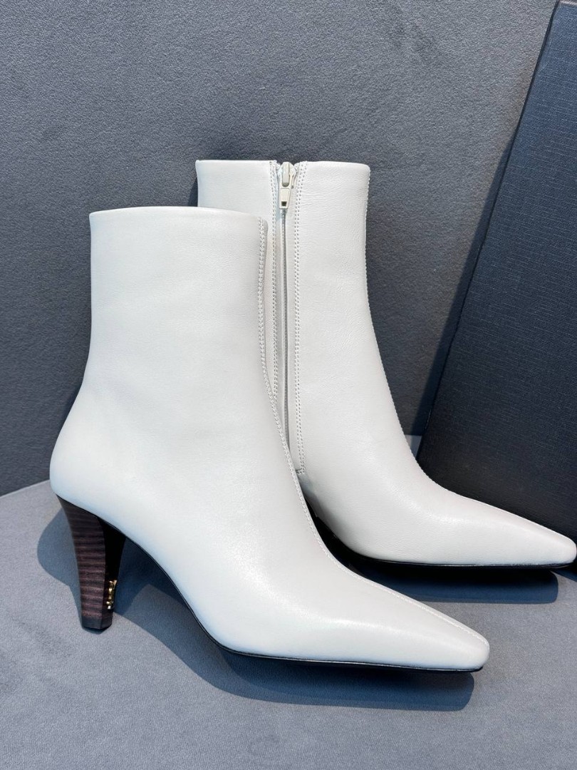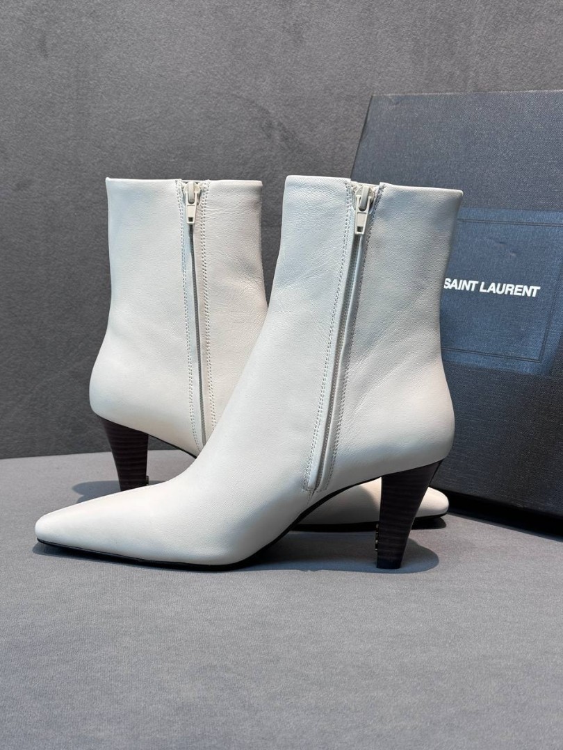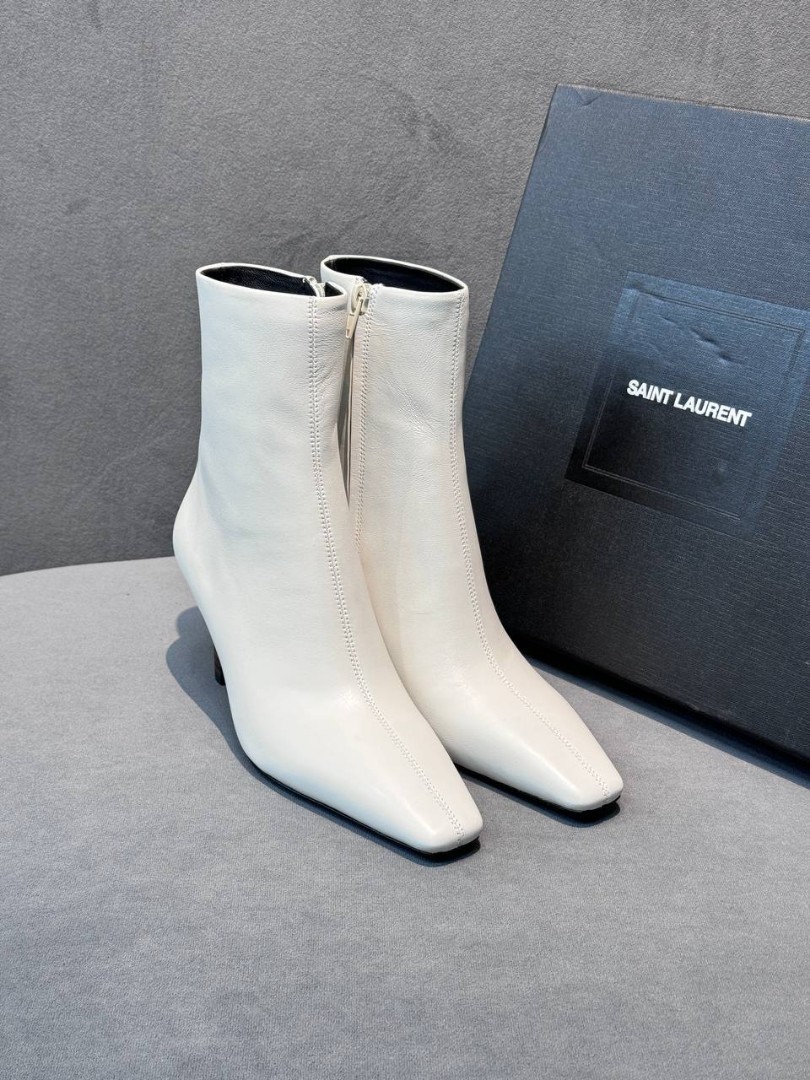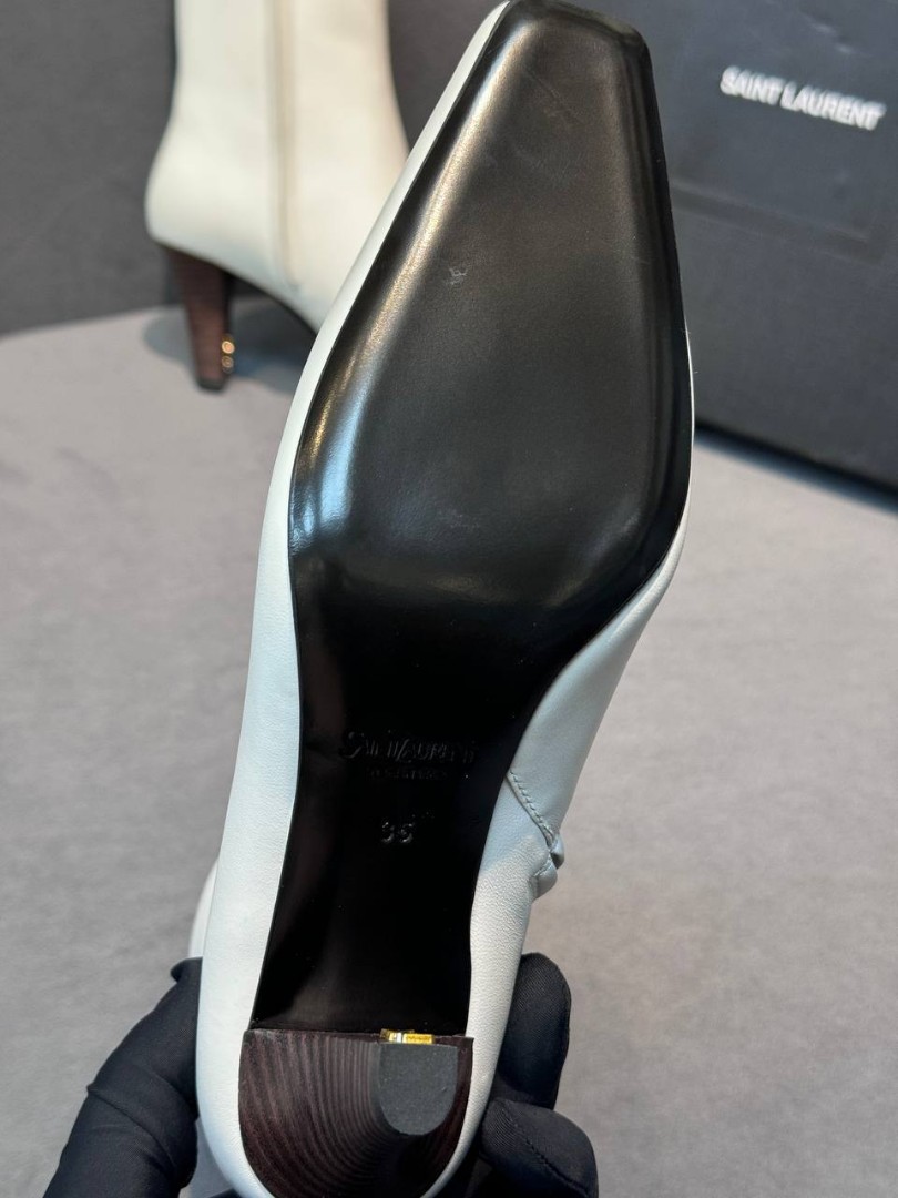 Женские кожаные ботильоны Saint Laurent Jill белые каблук 7 см 2026