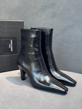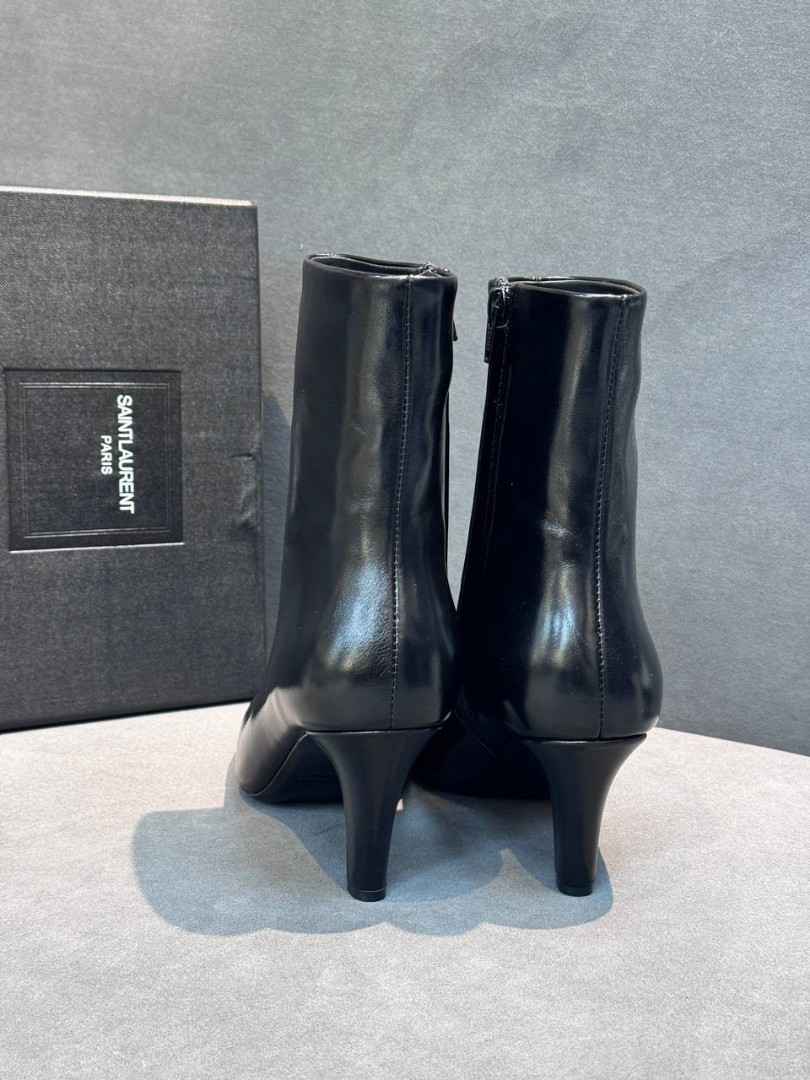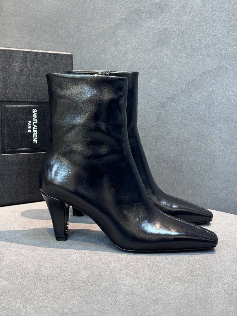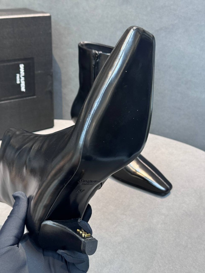Женские кожаные ботильоны Saint Laurent Jill черные глянцевые каблук 7 см 2025