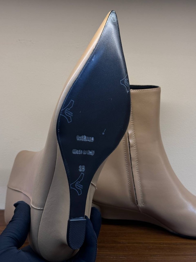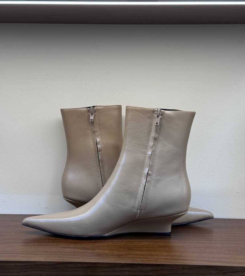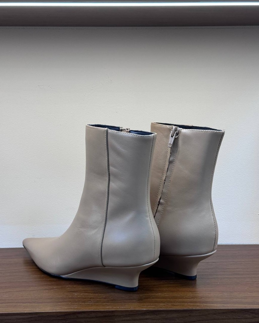 Женские кожаные ботильоны Toteme бежевые на танкетке 2025