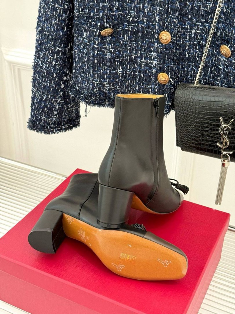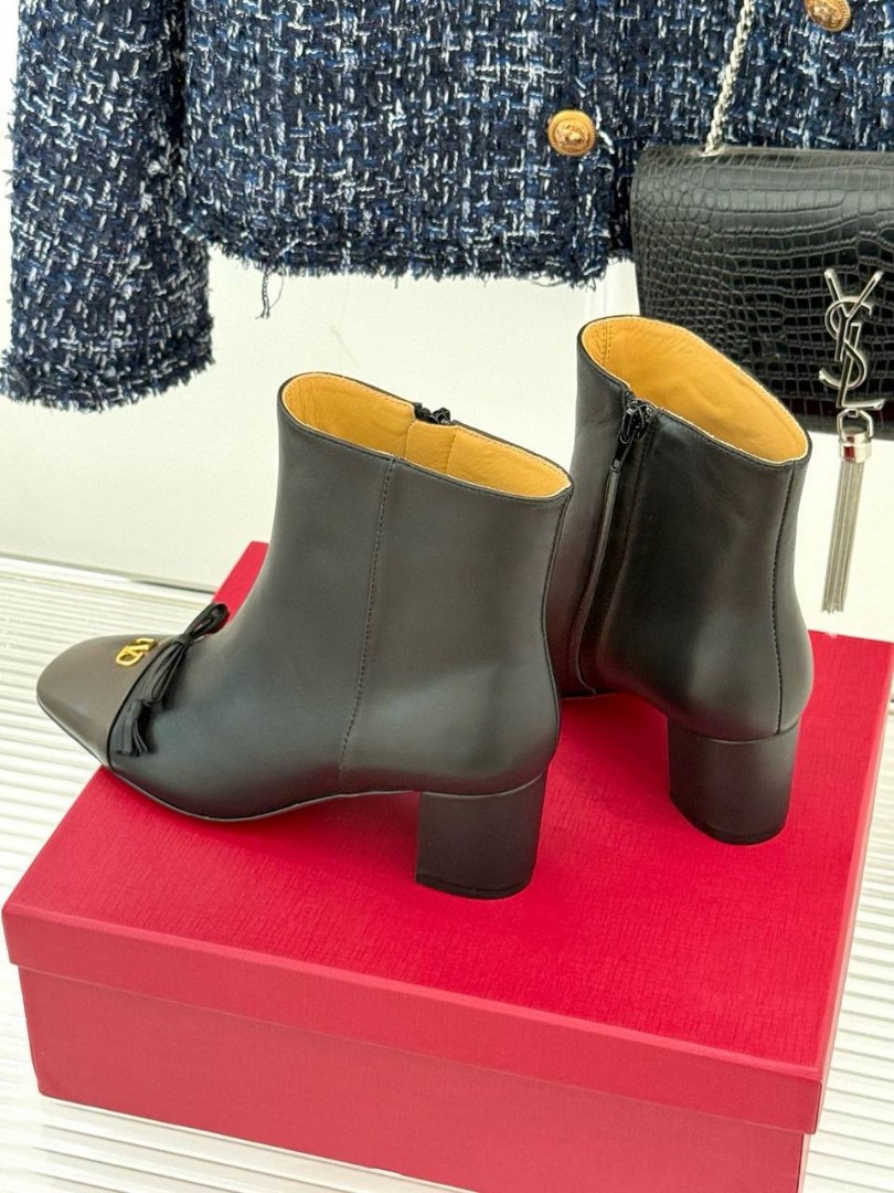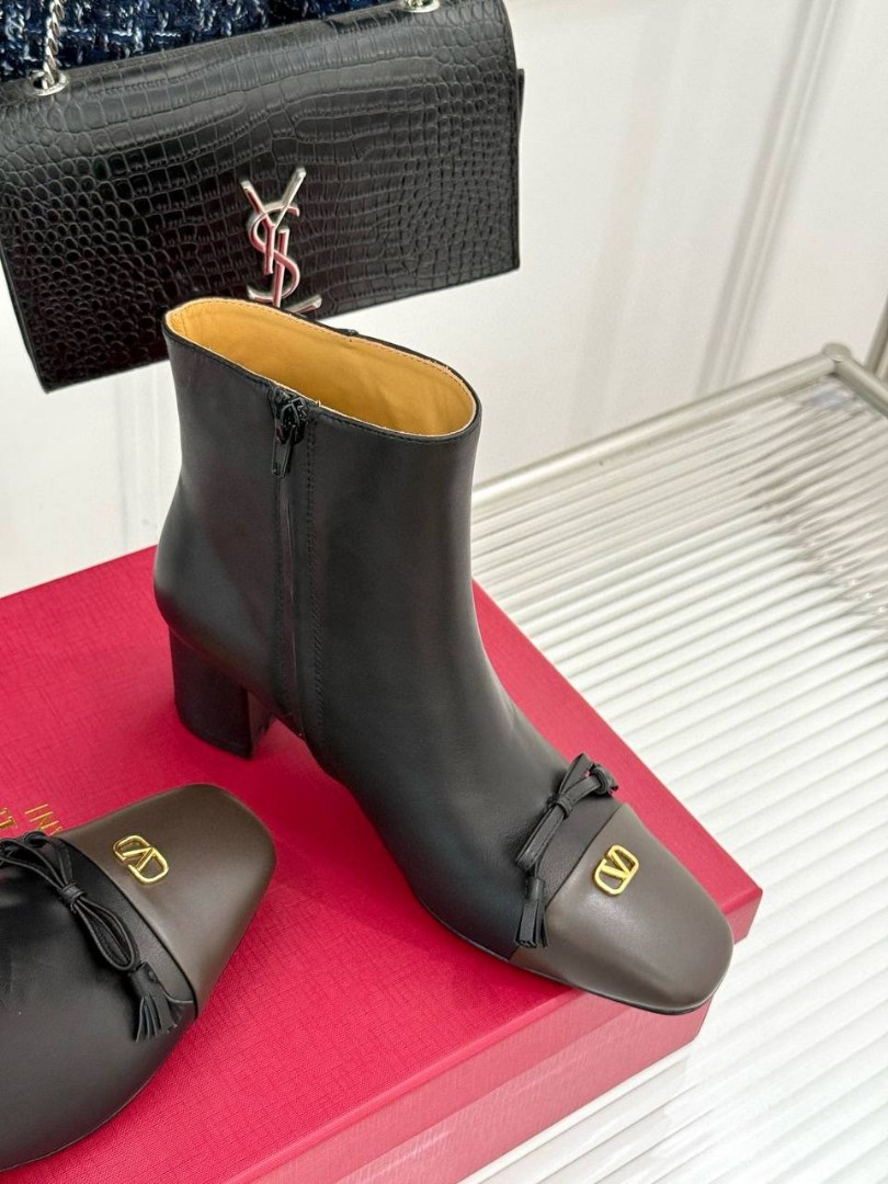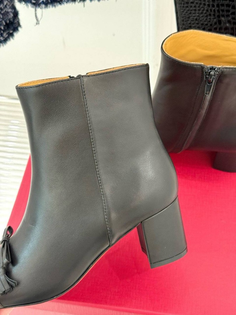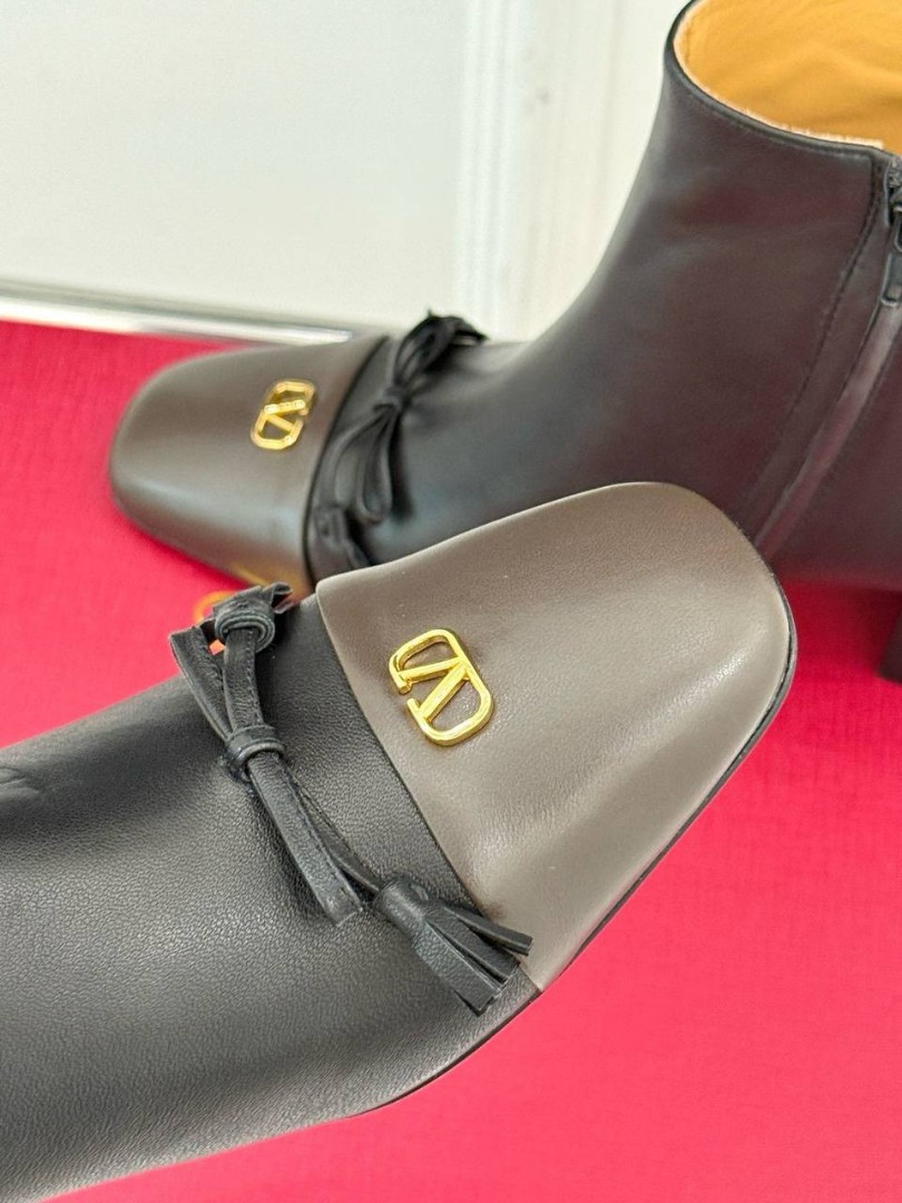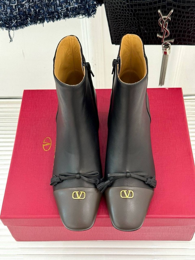 Женские кожаные ботильоны Valentino черные с коричневым носом каблук 5,5 см 2025