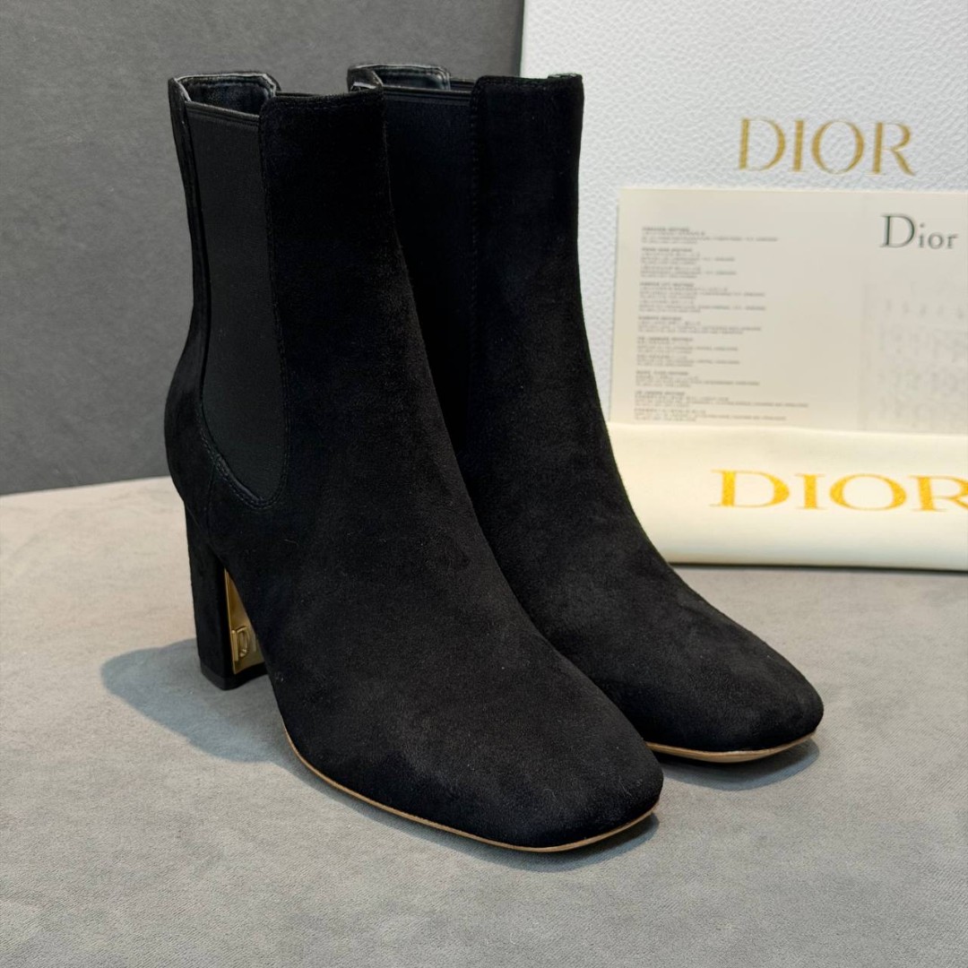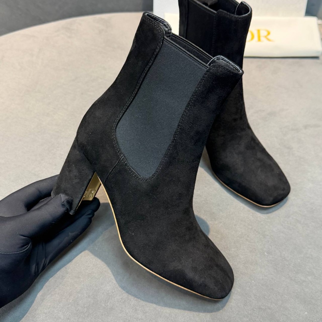 Женские замшевые ботильоны Christian Dior черные каблук 7,5 см 2026