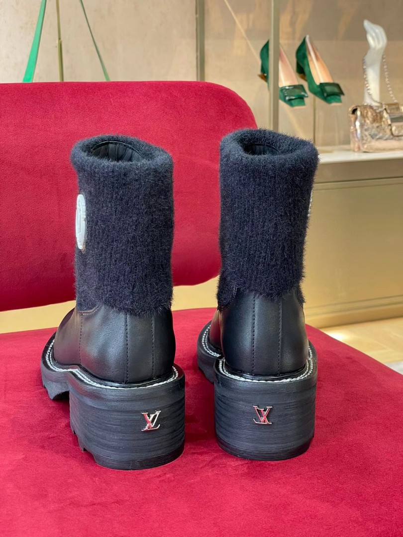 Женские ботинки Louis Vuitton 2022 черные кожаные с текстильным верхом