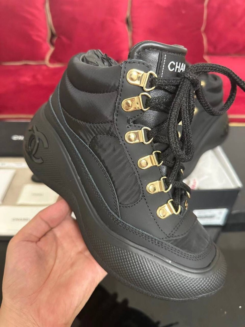 Женские комбинированные ботинки Chanel 2023 черные на шнурках