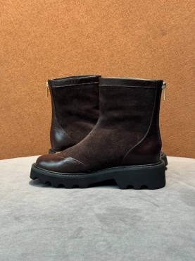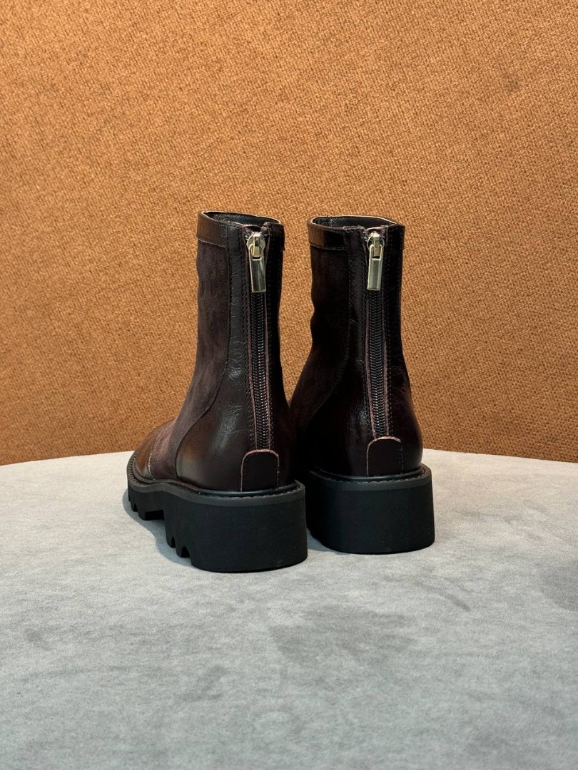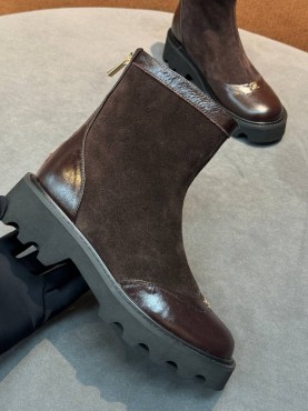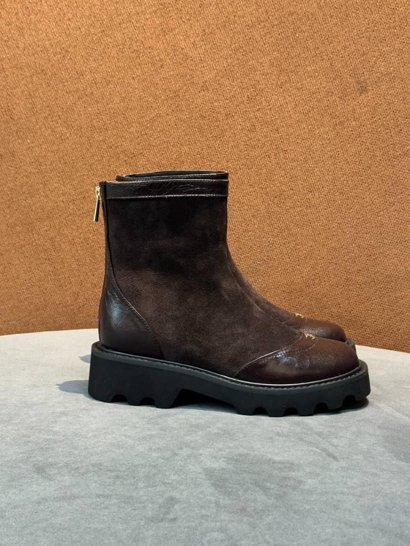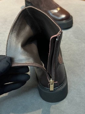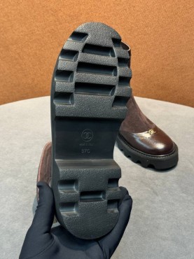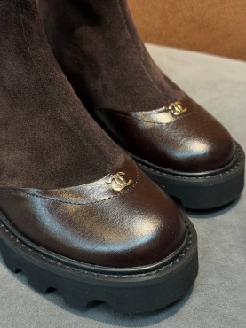 Женские комбинированные ботинки Chanel коричневые с молнией сзади 2025