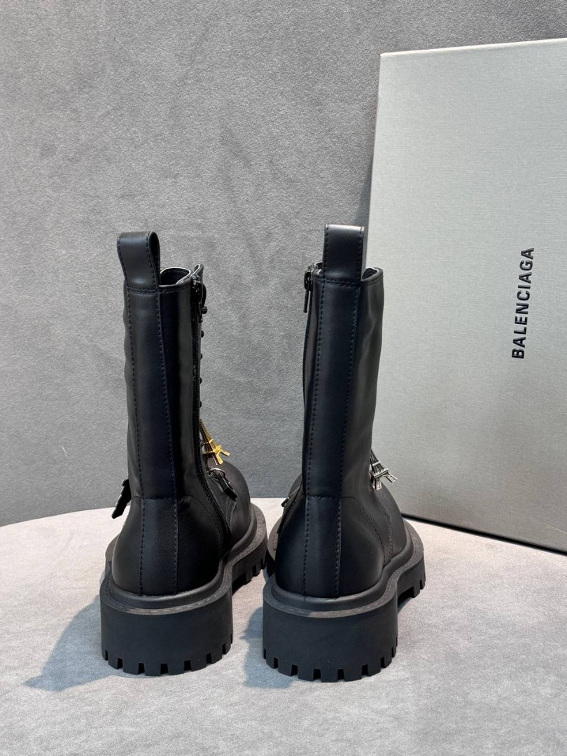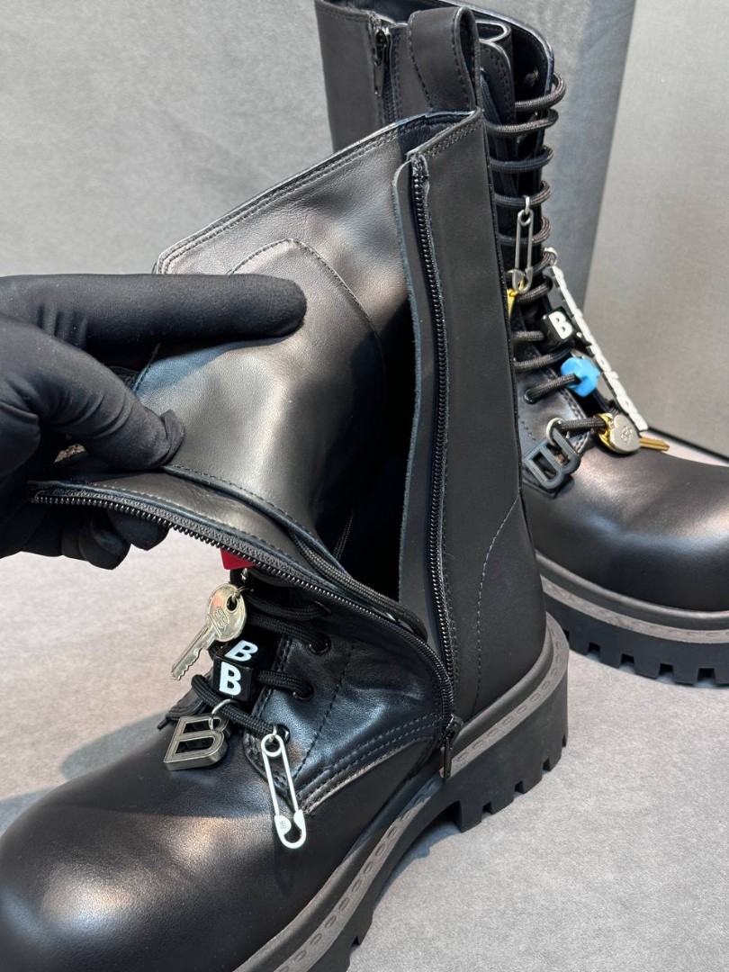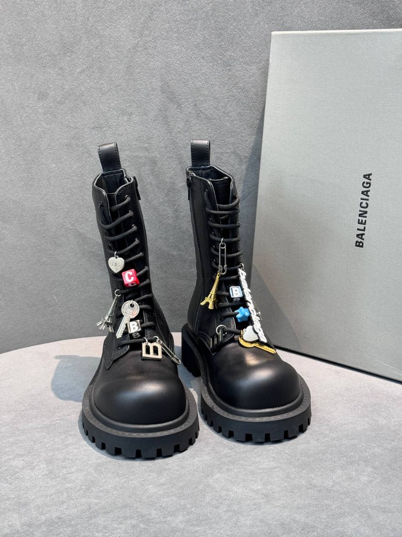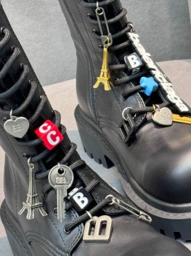 Женские кожаные ботинки Balenciaga черные с брелоками на шнурках 2025