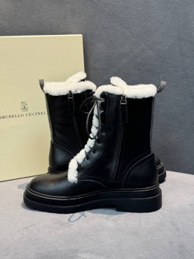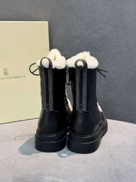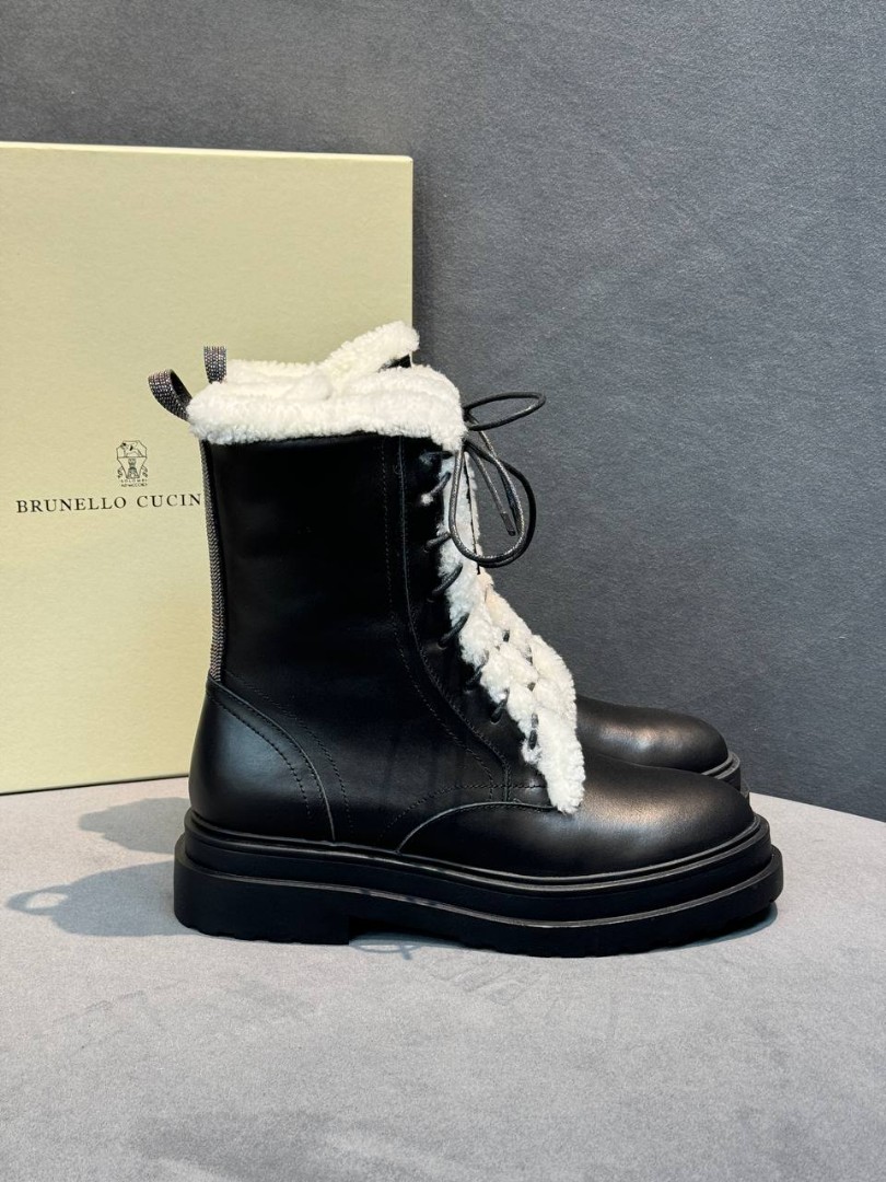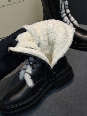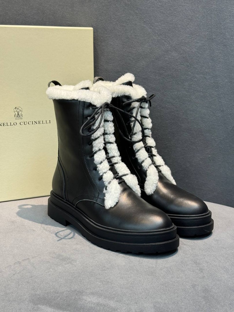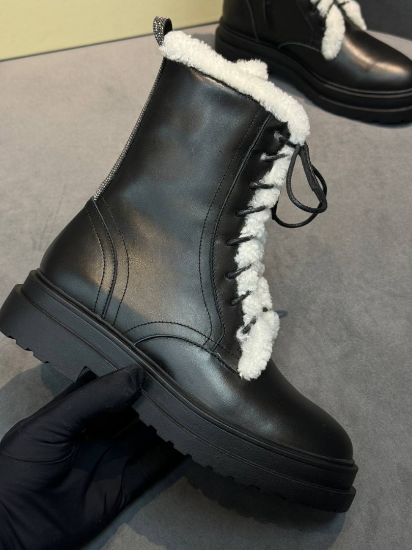 Женские кожаные ботинки Brunello Cucinelli черные на овчине 2025
