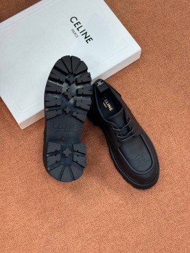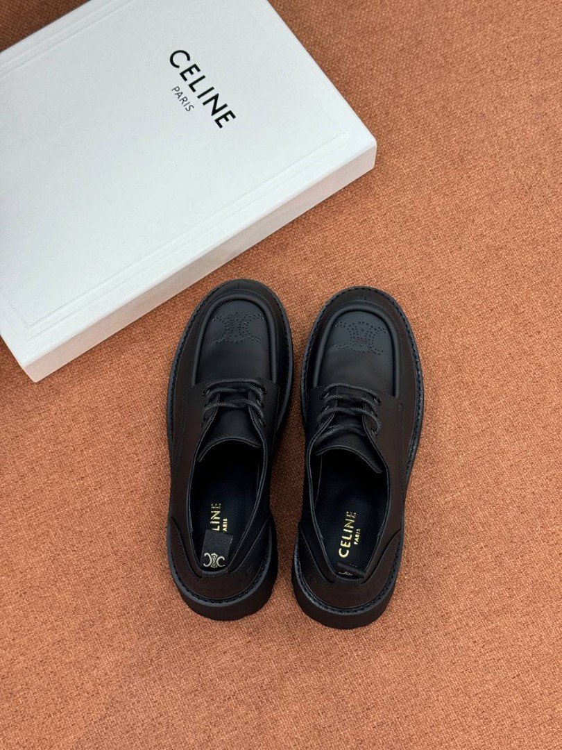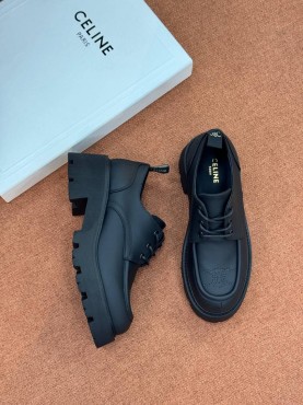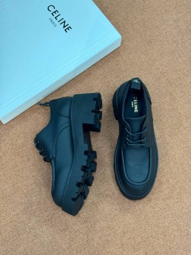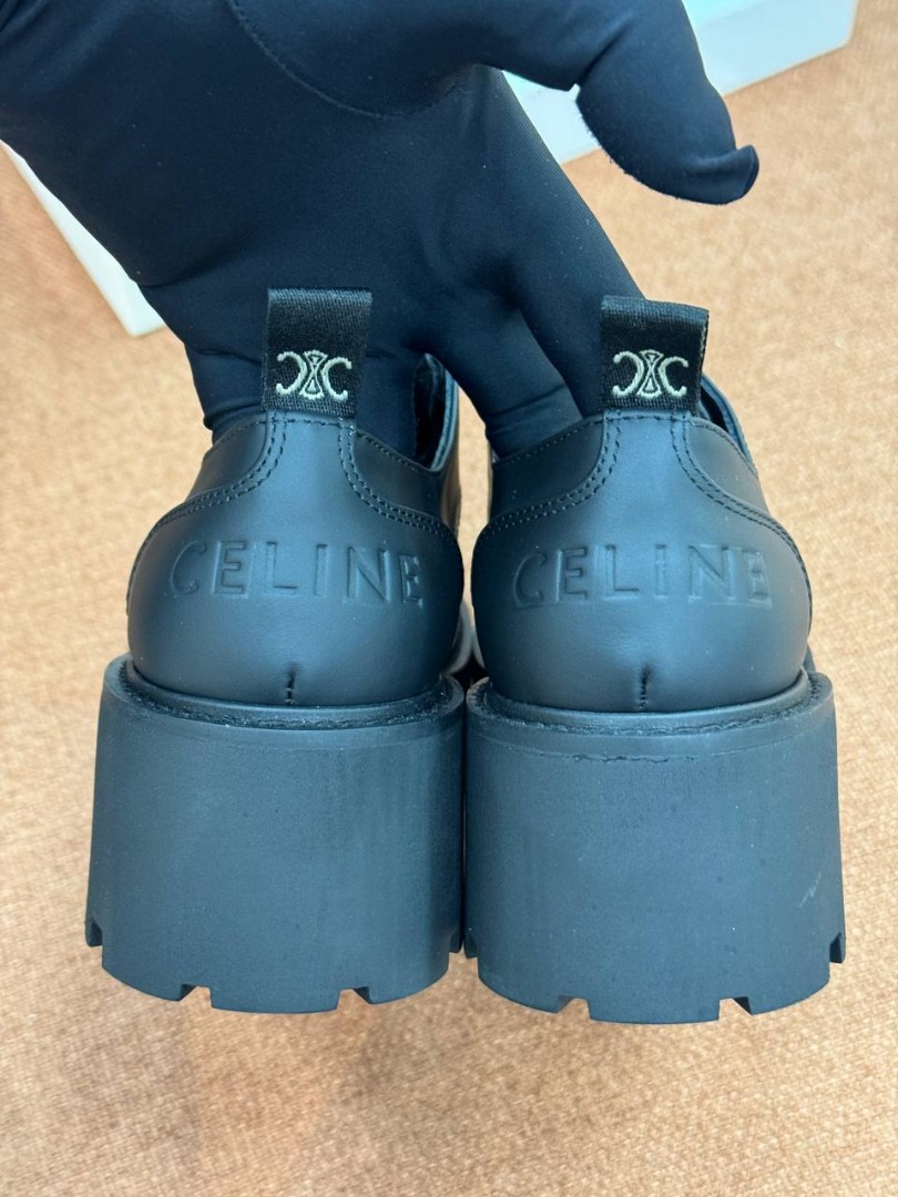 Женские кожаные ботинки Celine Triomphe черные на платформе 2025
