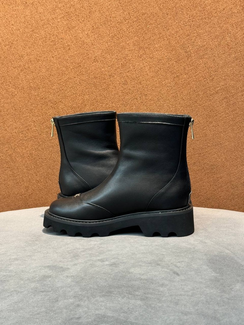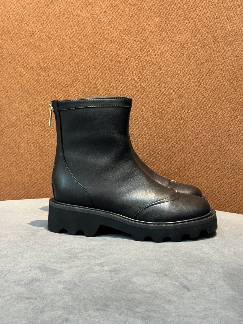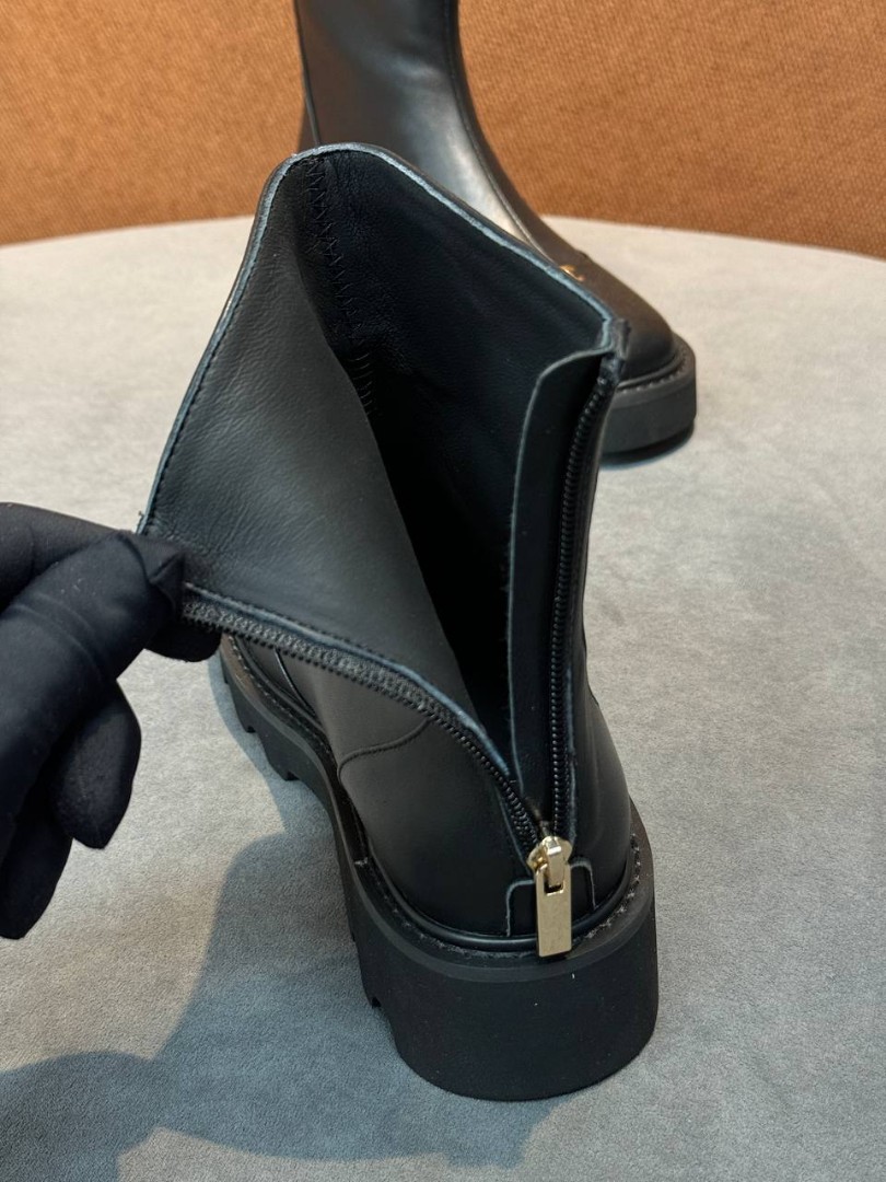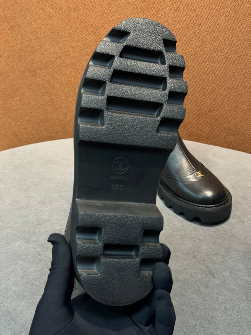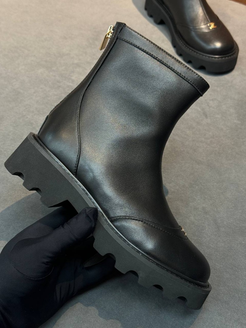 Женские кожаные ботинки Chanel черные с молнией сзади 2025