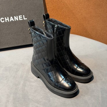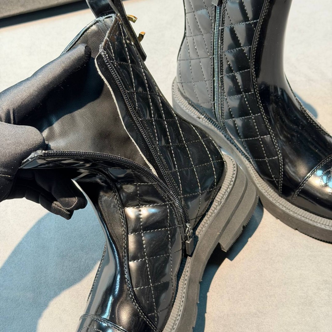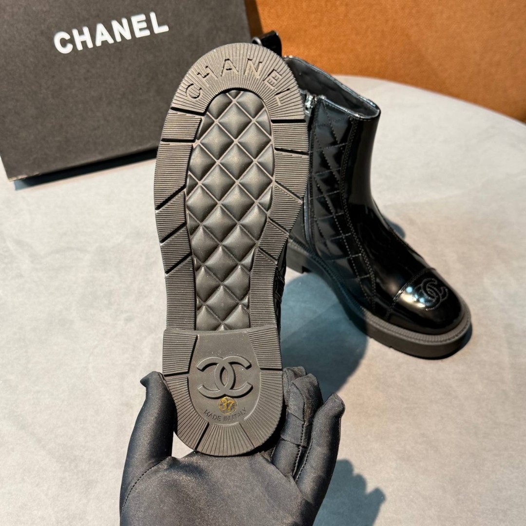 Женские кожаные ботинки Chanel черные с прострочкой глянцевые 2026