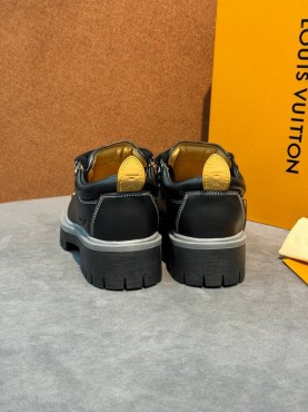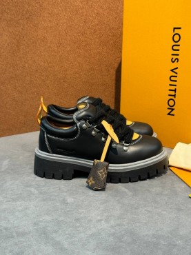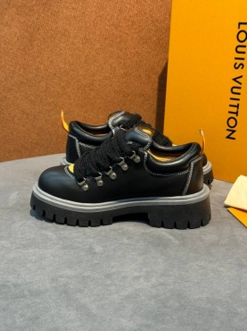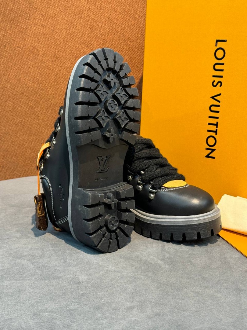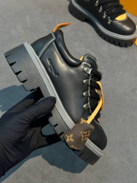 Женские кожаные ботинки Louis Vuitton черные с широкими шнурками 2025