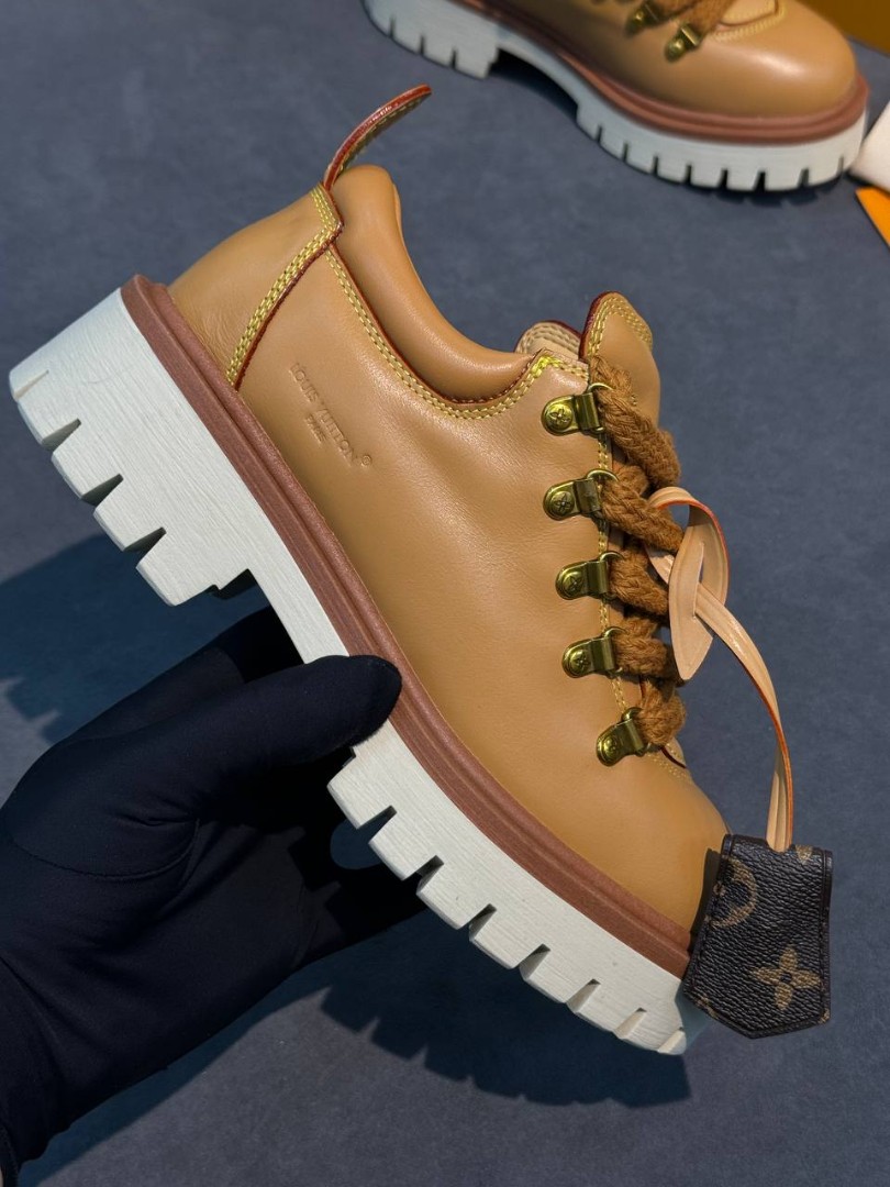 Женские кожаные ботинки Louis Vuitton коричневые с широкими шнурками 2025