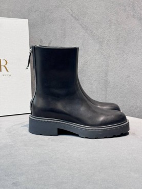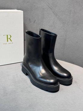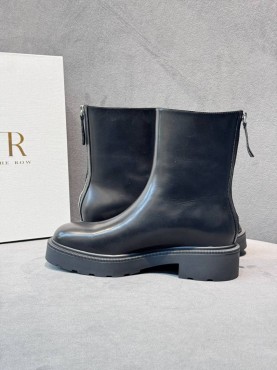 Женские кожаные ботинки The Row черные с молнией сзади 2025
