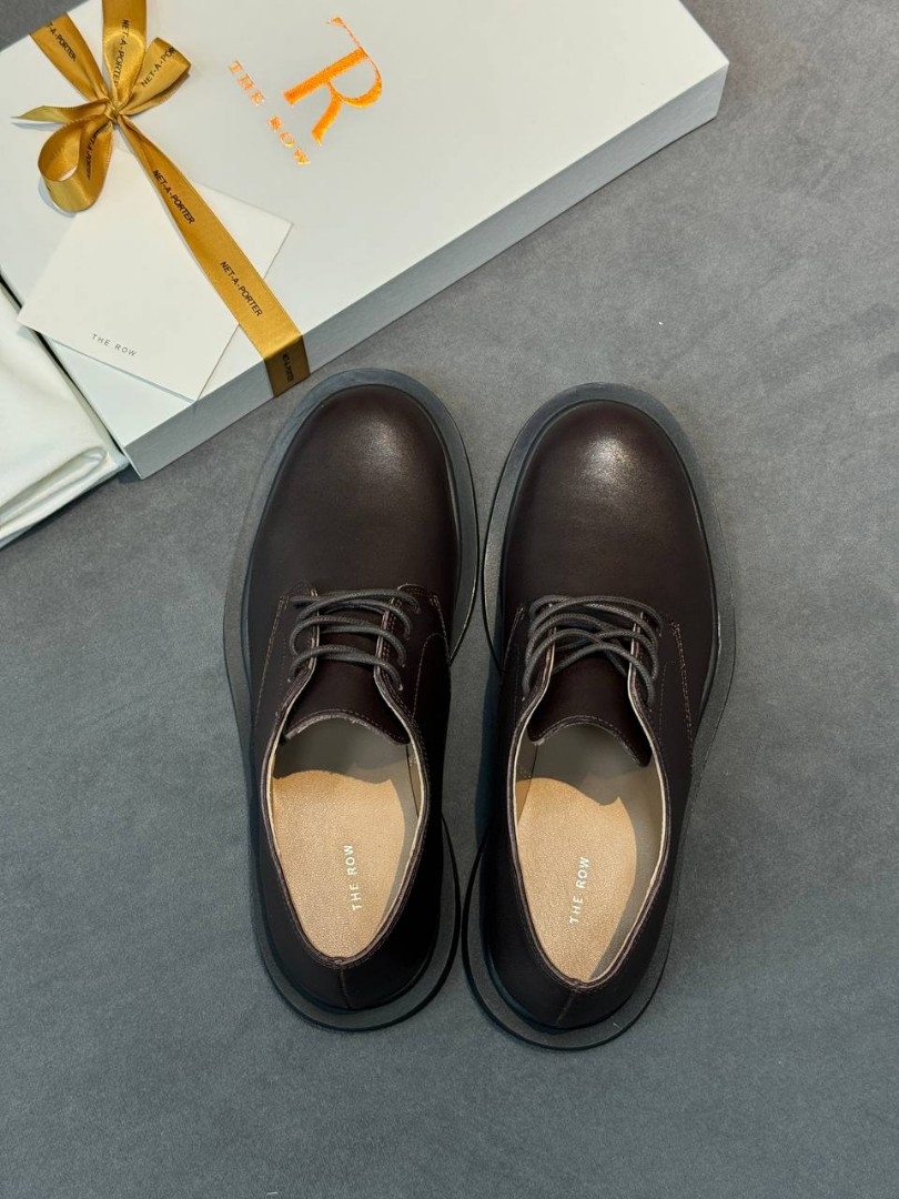 Женские кожаные ботинки The Row коричневые на шнурках 2025
