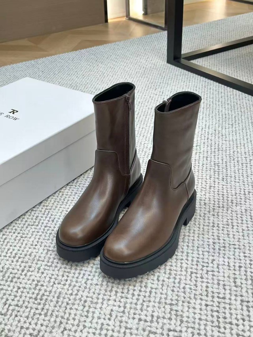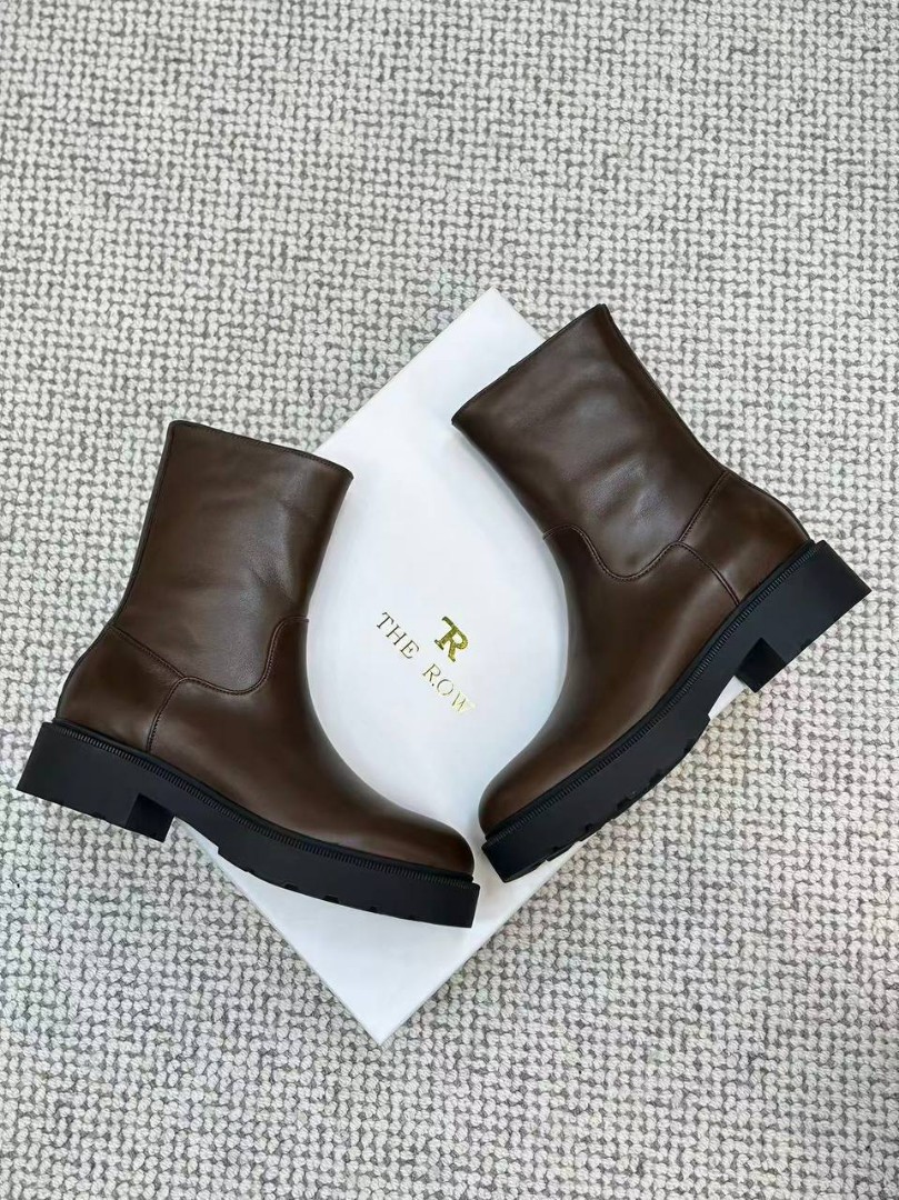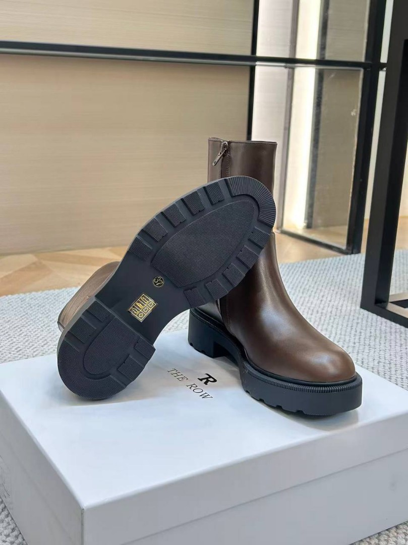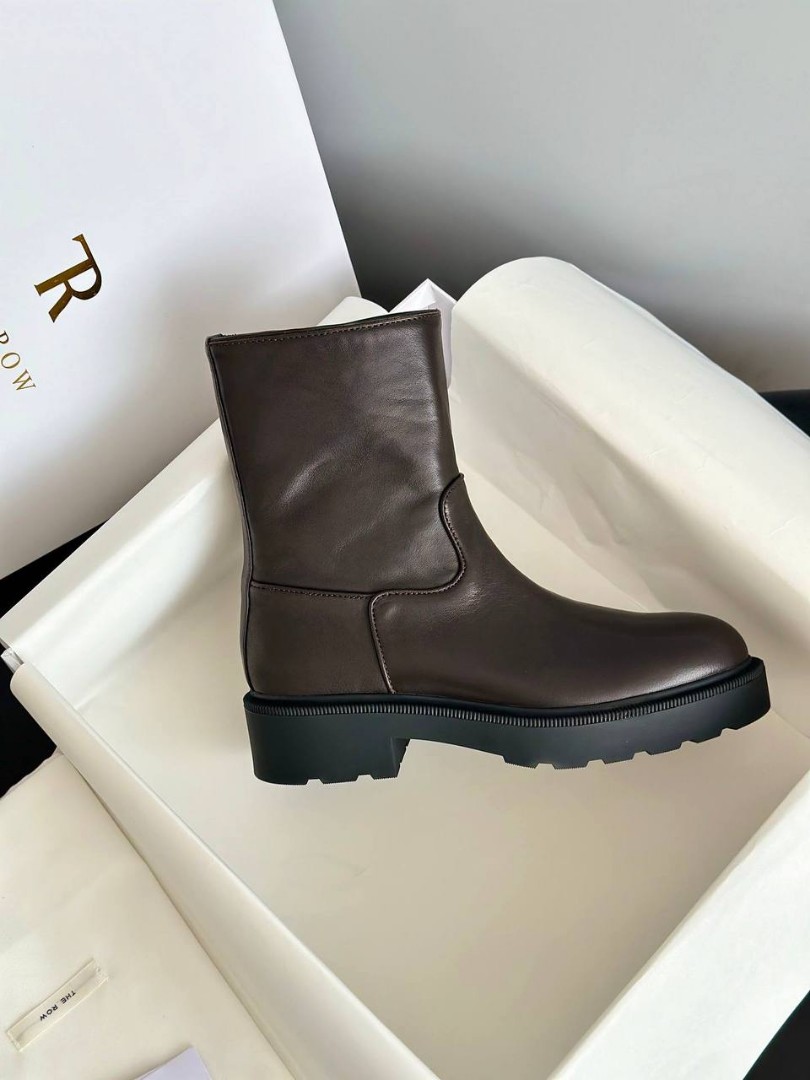 Женские кожаные ботинки The Row коричневые с массивной подошвой 2026