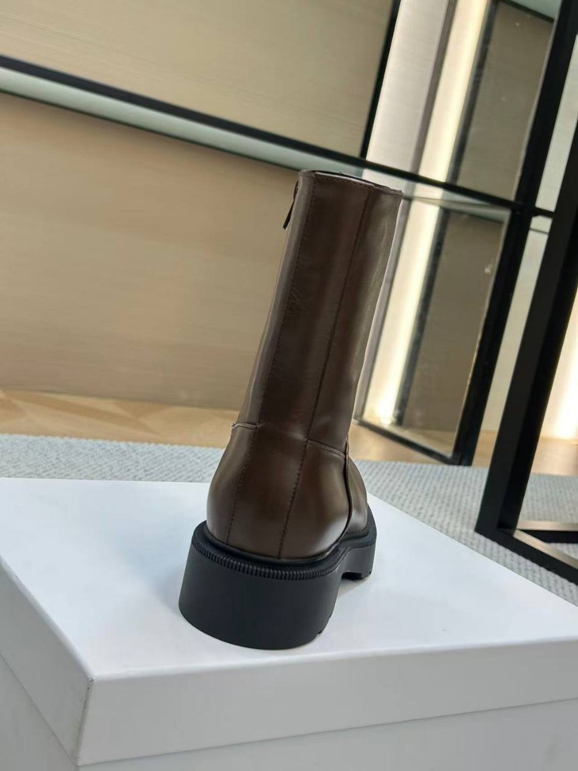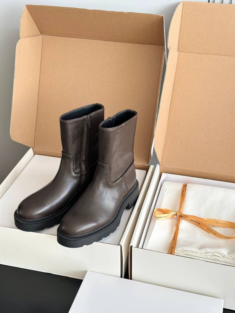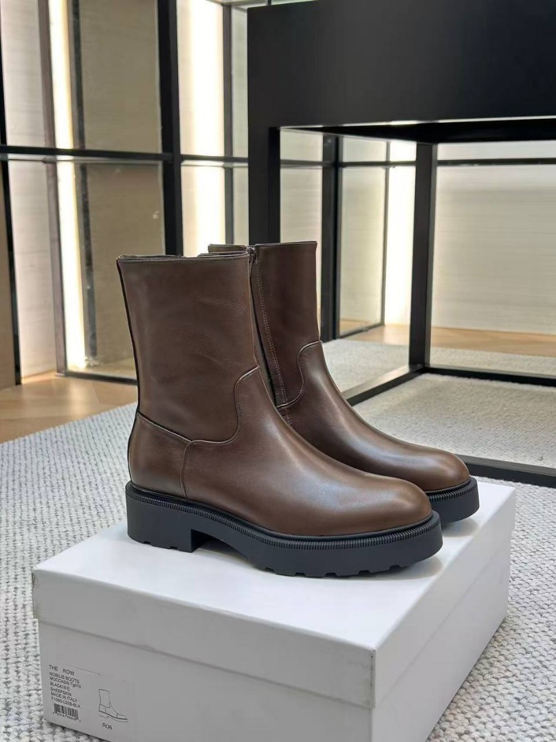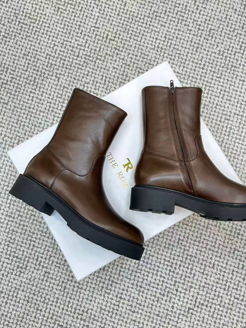 Женские кожаные ботинки The Row коричневые с массивной подошвой 2026