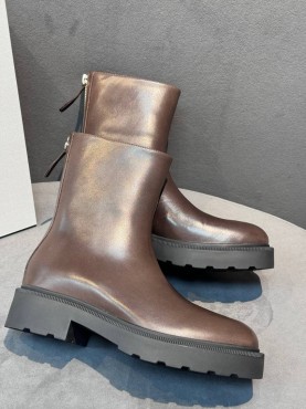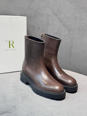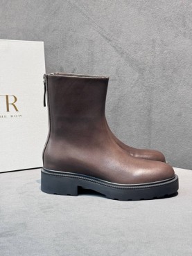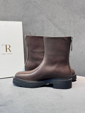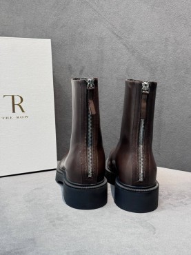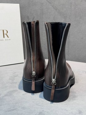 Женские кожаные ботинки The Row коричневые с молнией сзади 2025