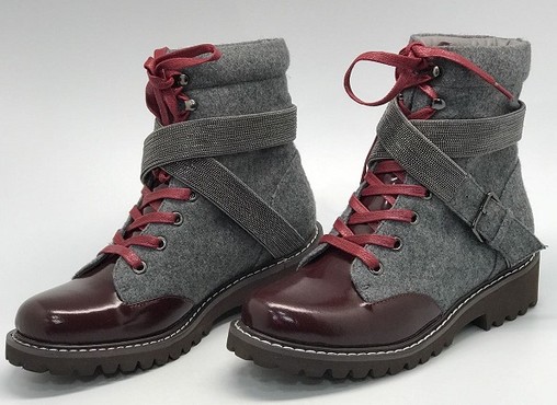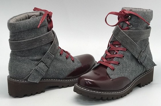 Женские осенние комбинированные ботинки Brunello Cucinelli серые с бордовым носом