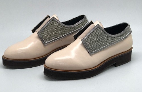 Женские осенние лаковые полуботинки Brunello Cucinelli розовые с серебристым украшением