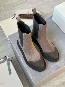 Женские замшевые ботинки Brunello Cucinelli 2023 коричневые с кожаным носом