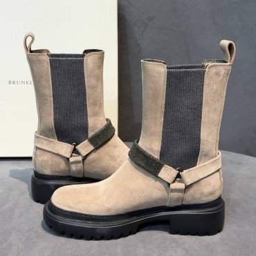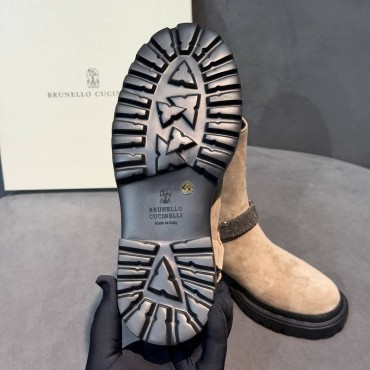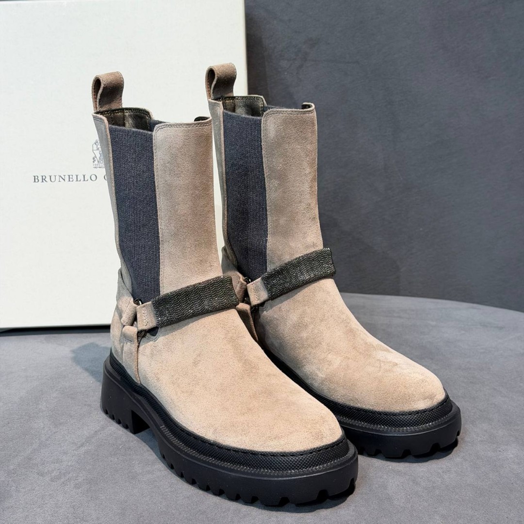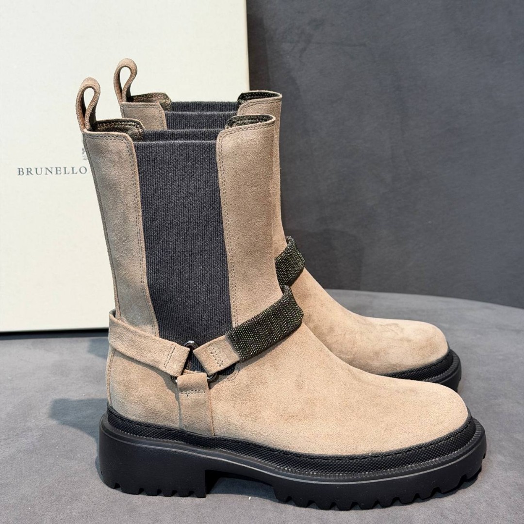 Женские замшевые ботинки Brunello Cucinelli бежевые с бусинами 2025