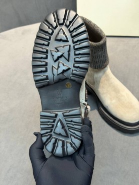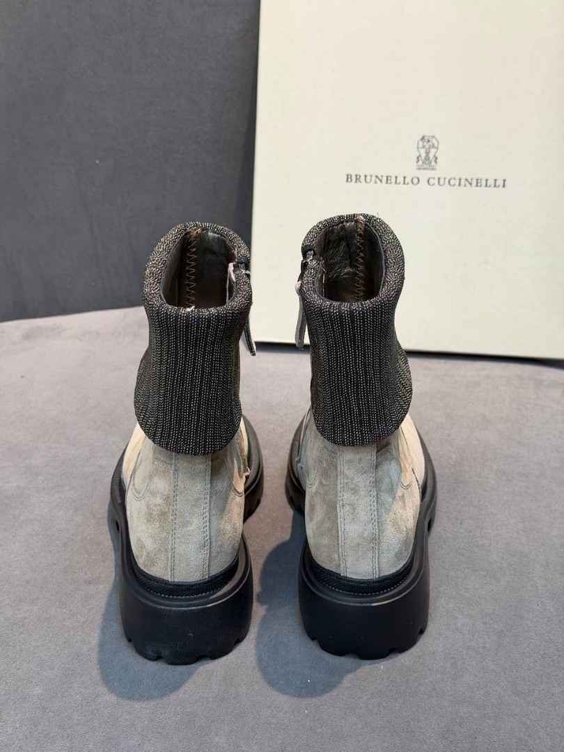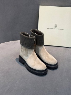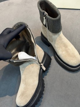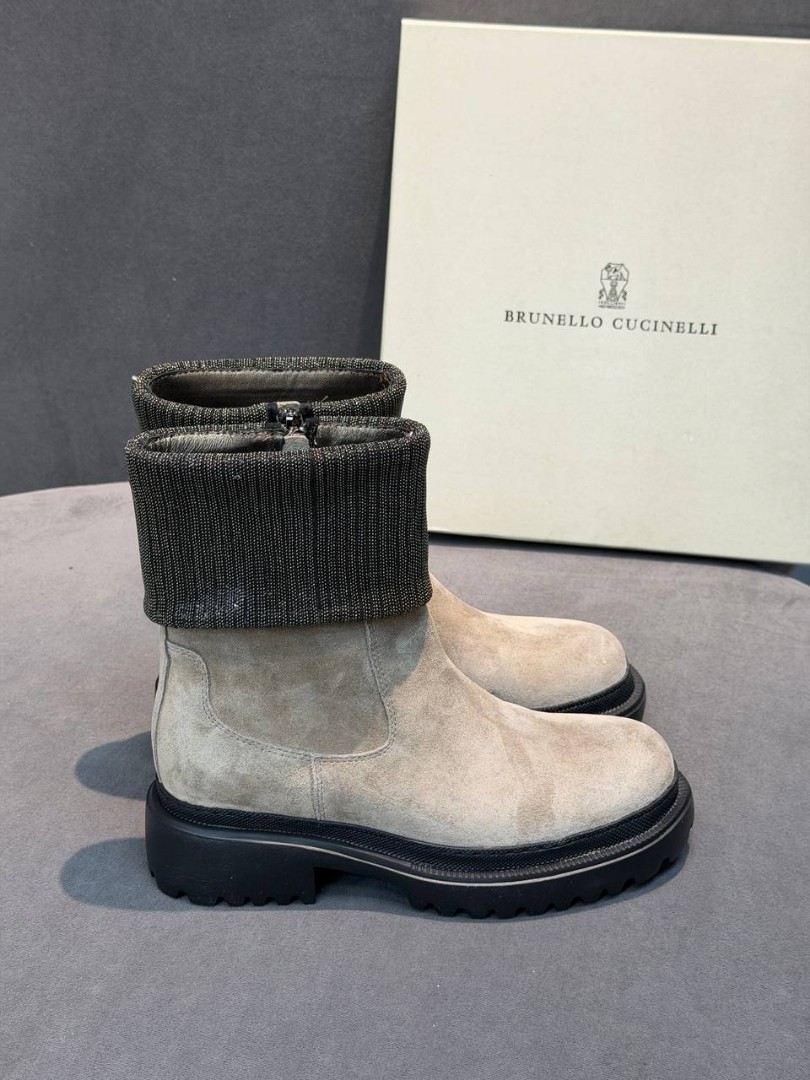 Женские замшевые ботинки Brunello Cucinelli бежевые с манжетом 2026