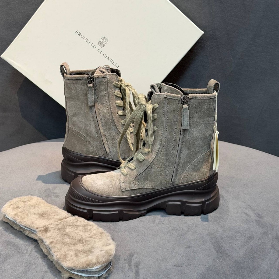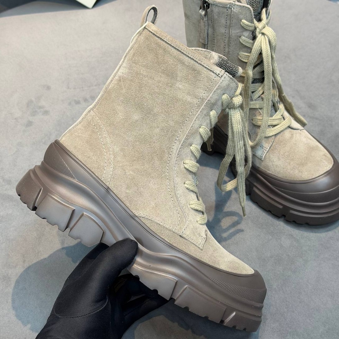 Женские замшевые ботинки Brunello Cucinelli бежевые с меховой стелькой 2025