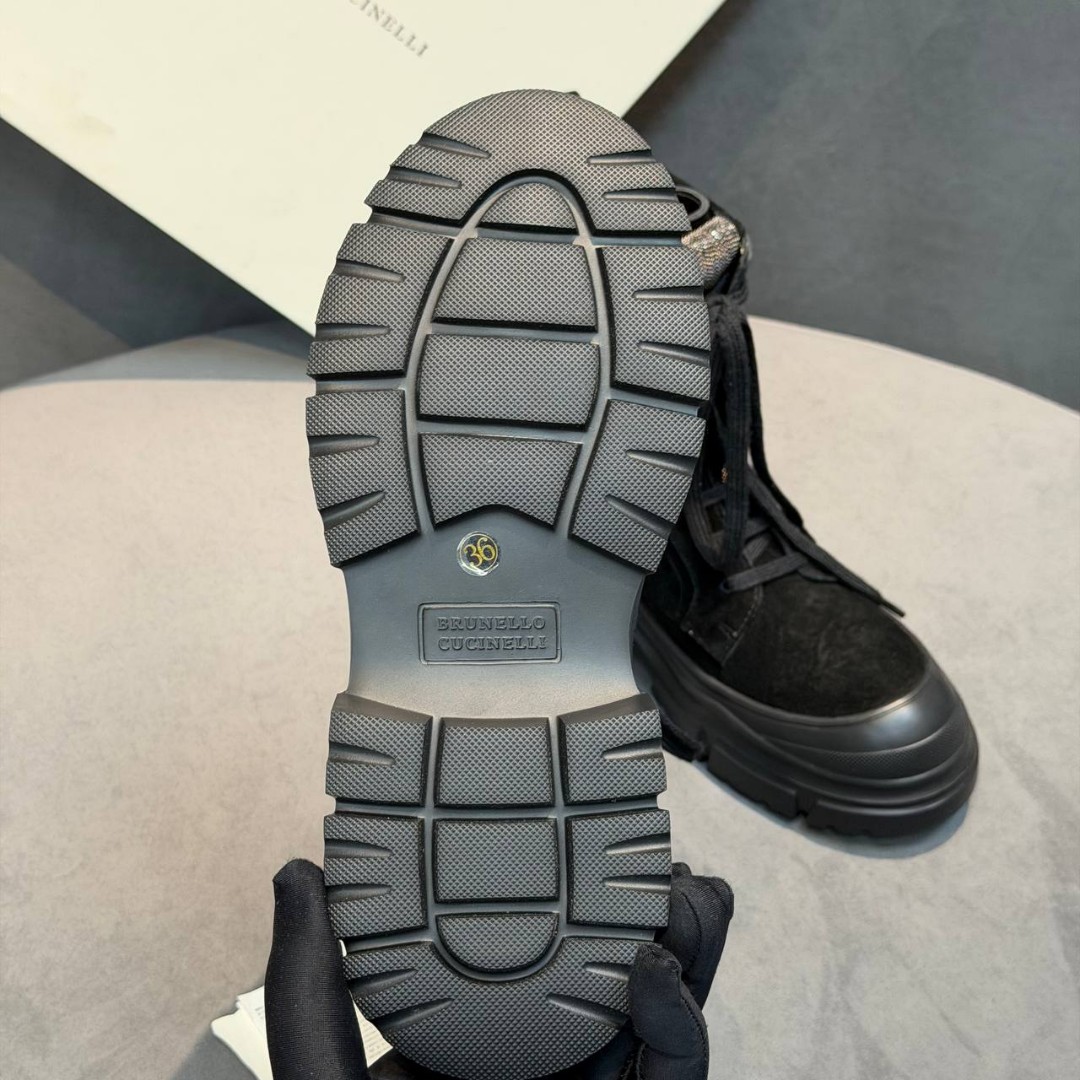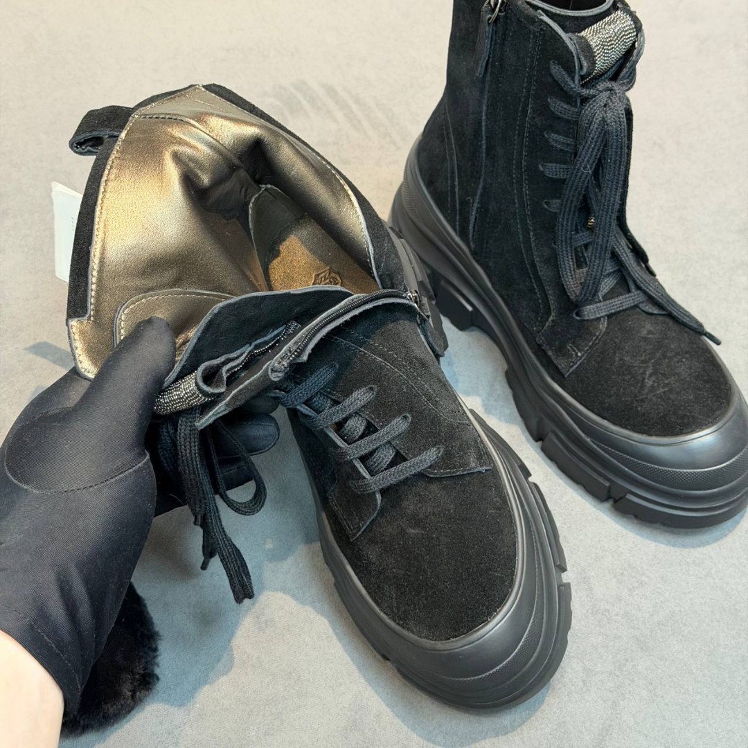 Женские замшевые ботинки Brunello Cucinelli черные с меховой стелькой 2025