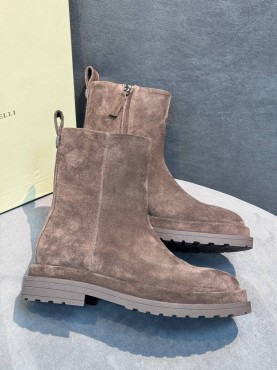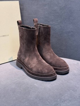 Женские замшевые ботинки Brunello Cucinelli коричневые на молнии 2025