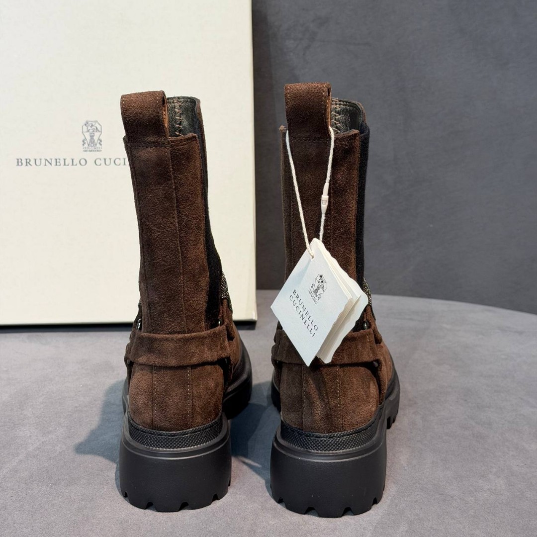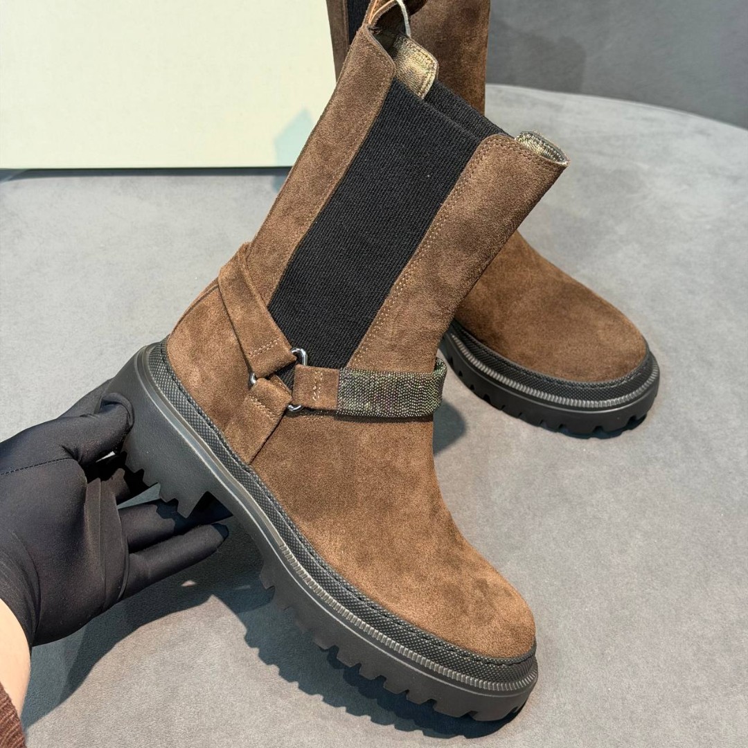 Женские замшевые ботинки Brunello Cucinelli коричневые с бусинами 2025