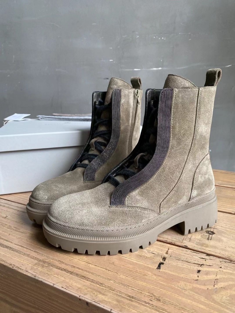 Женские замшевые ботинки Brunello Cucinelli темно-бежевые