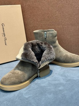 Женские замшевые ботинки Gianvito Rossi бежевые на меху 2025