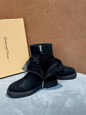 Женские замшевые ботинки Gianvito Rossi черные на меху 2025