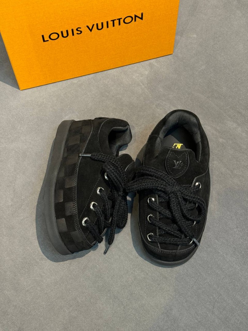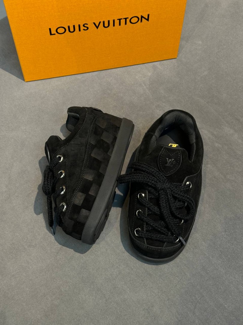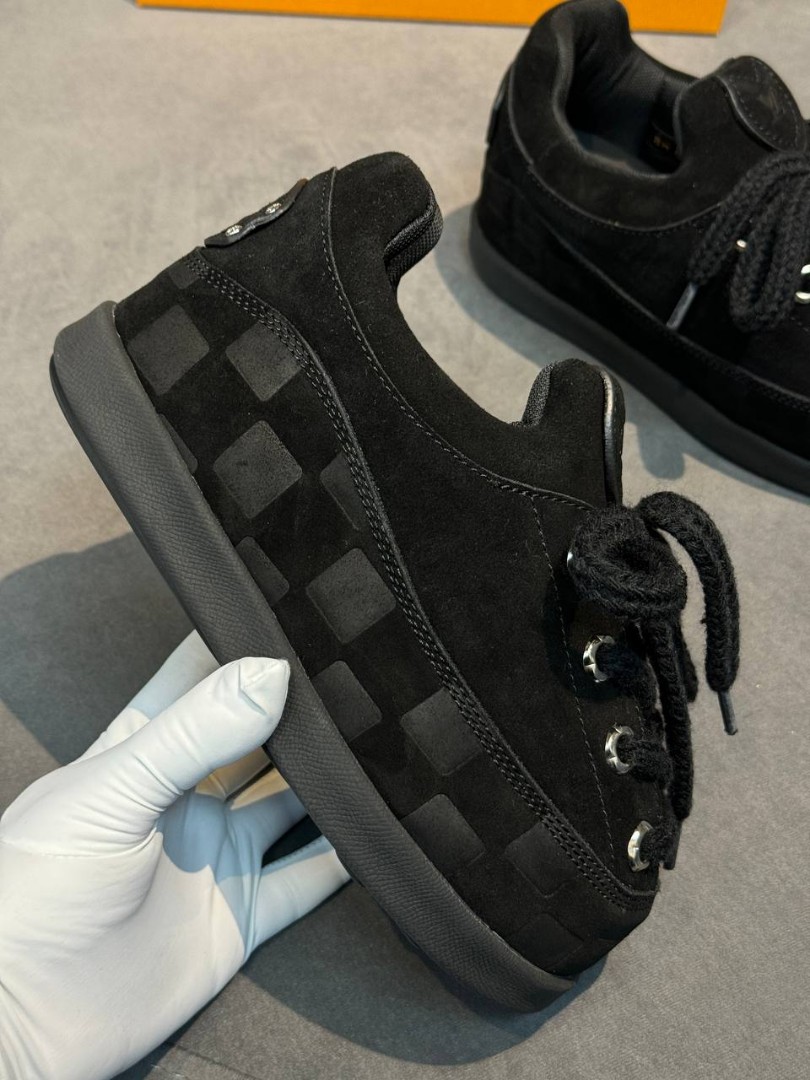 Женские замшевые ботинки Louis Vuitton черные со шнурками 2025