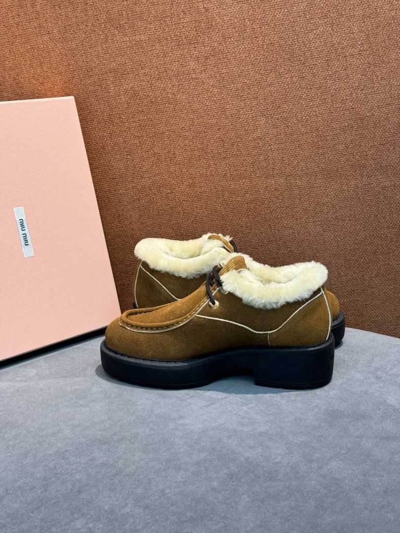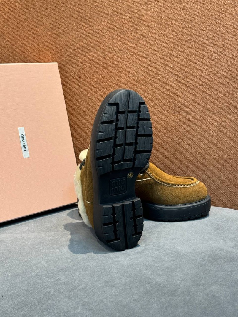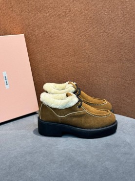 Женские замшевые ботинки Miu Miu коричневые на меху 2025