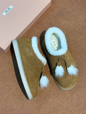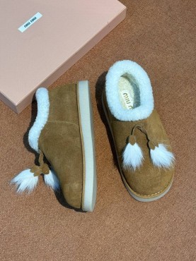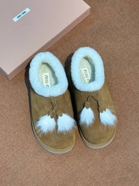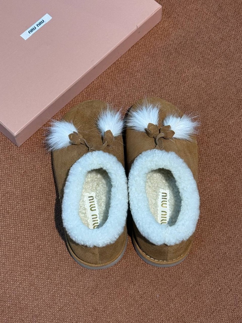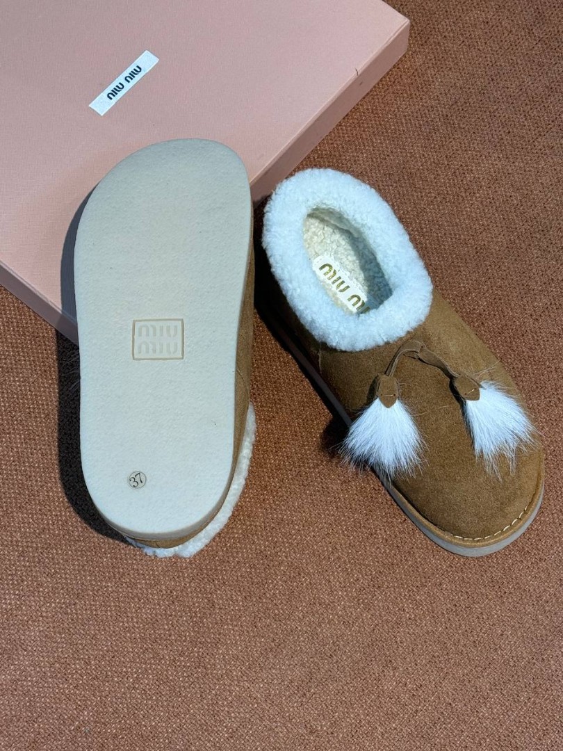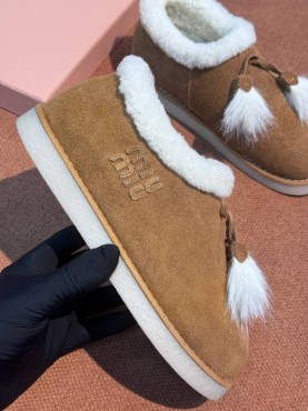 Женские замшевые ботинки Miu Miu на меху коричневые с кисточками 2025