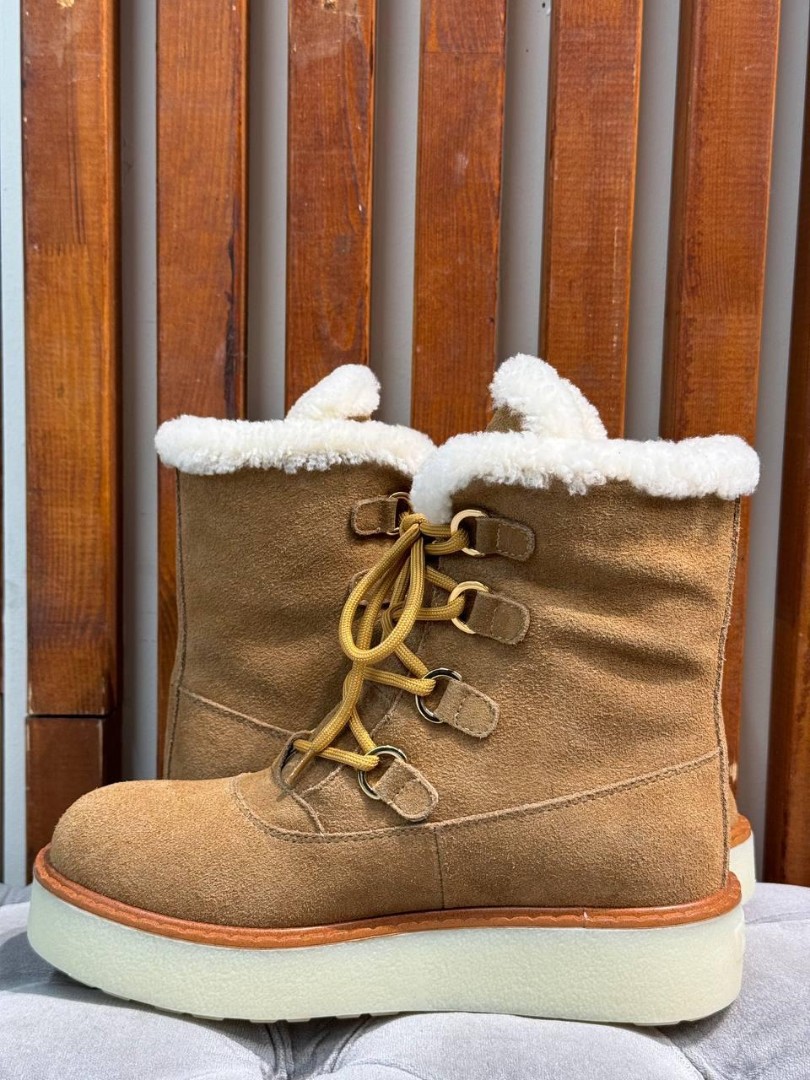 Женские замшевые ботинки Prada коричневые со шнуровкой 2024