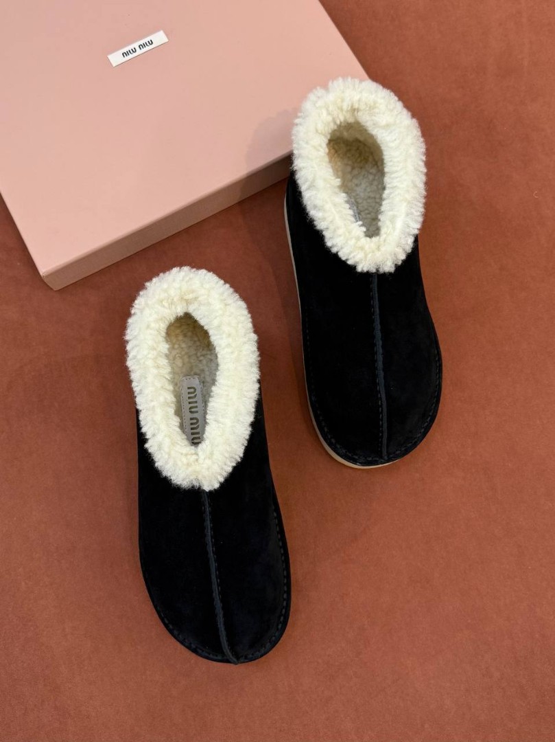 Женские замшевые ботинки с мехом Miu Miu черные 2026