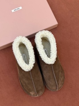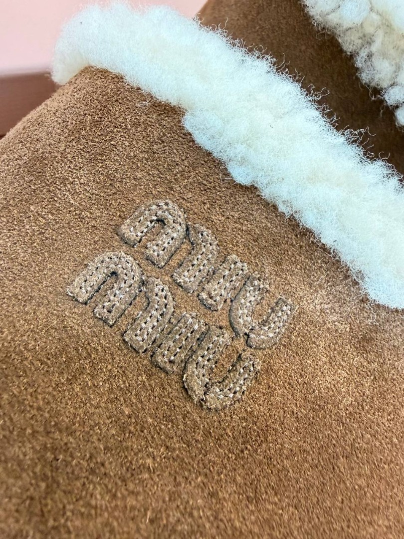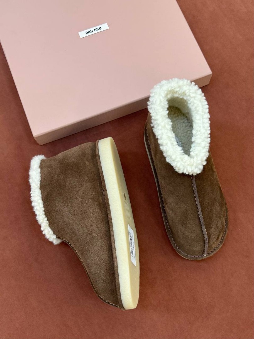 Женские замшевые ботинки с мехом Miu Miu коричневые 2026