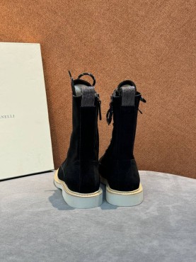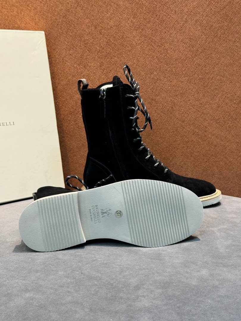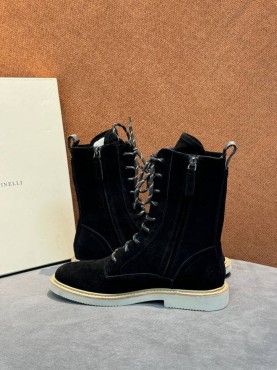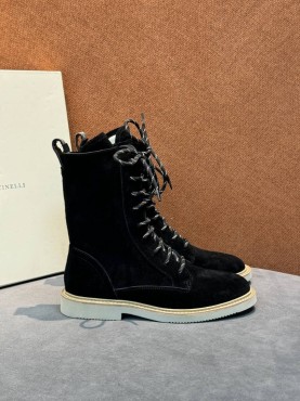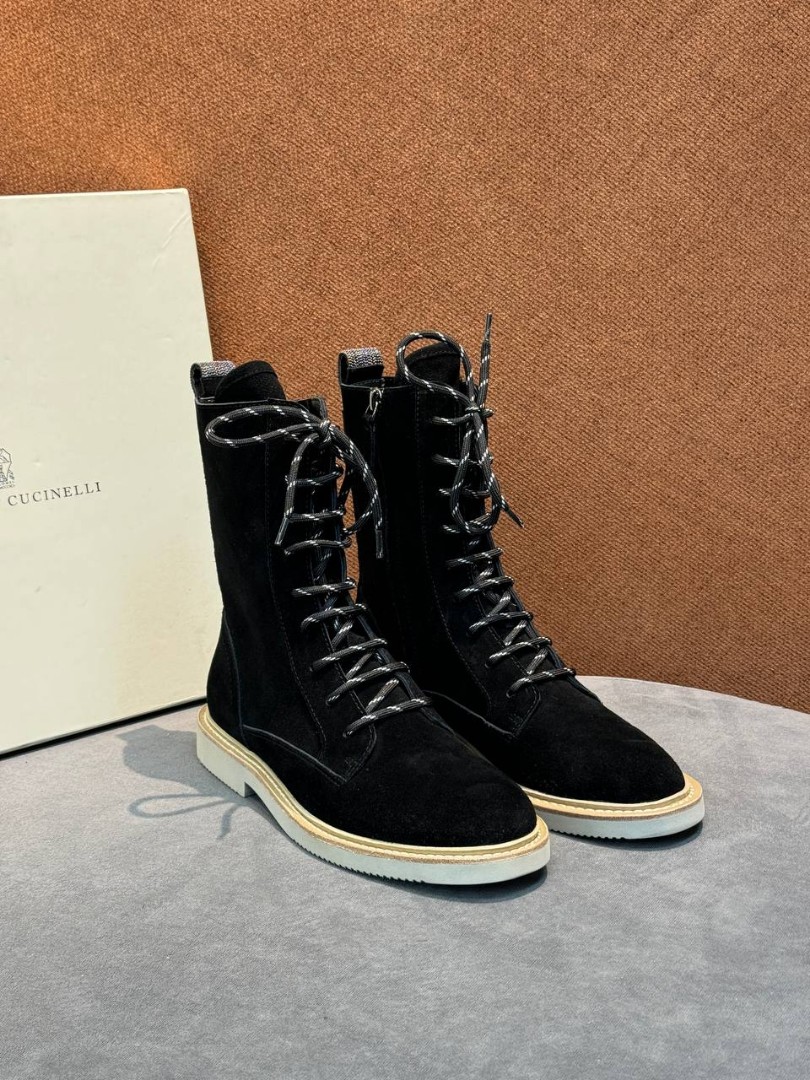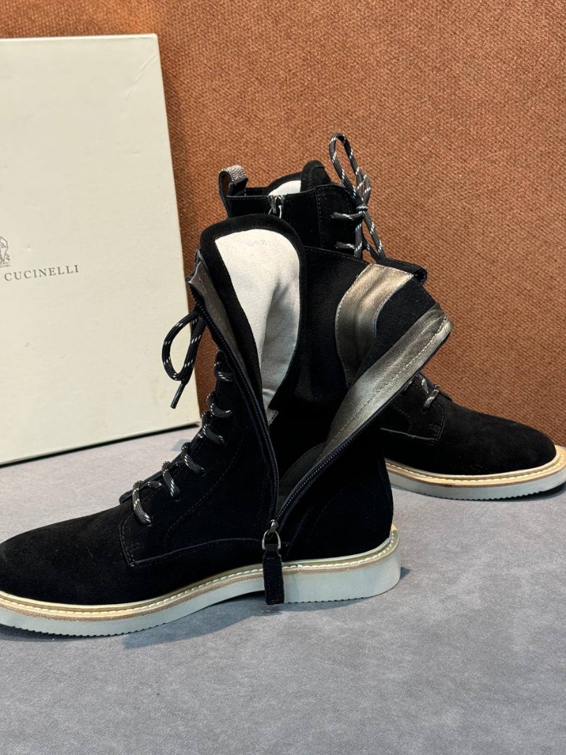 Женские замшевые сапоги со шнурками Brunello Cucinelli черные 2025