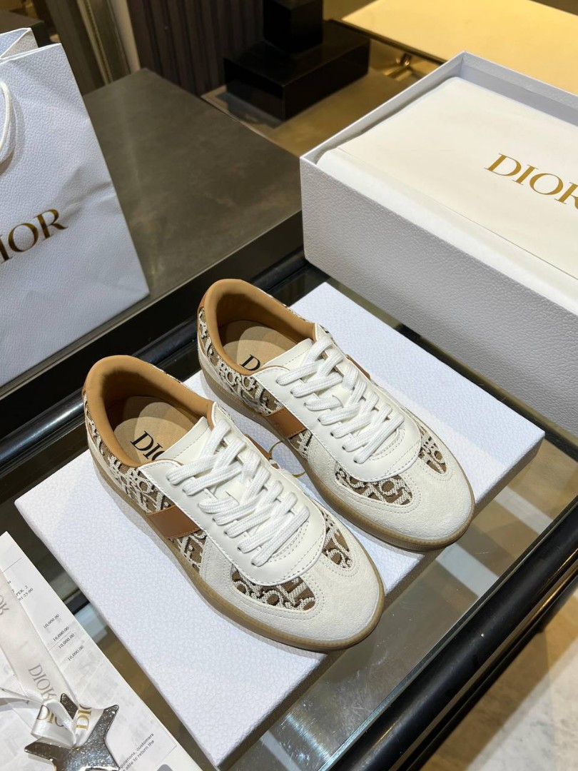 Женские комбинированные кеды Christian Dior белые с коричневым 2025