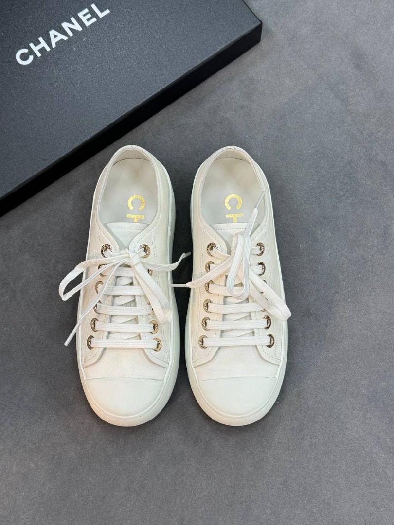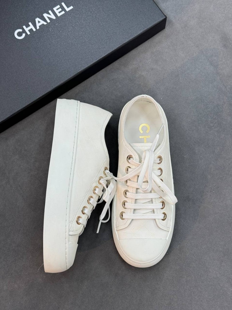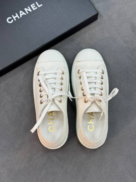 Женские кожаные кеды Chanel белые с резиновым носом 2025