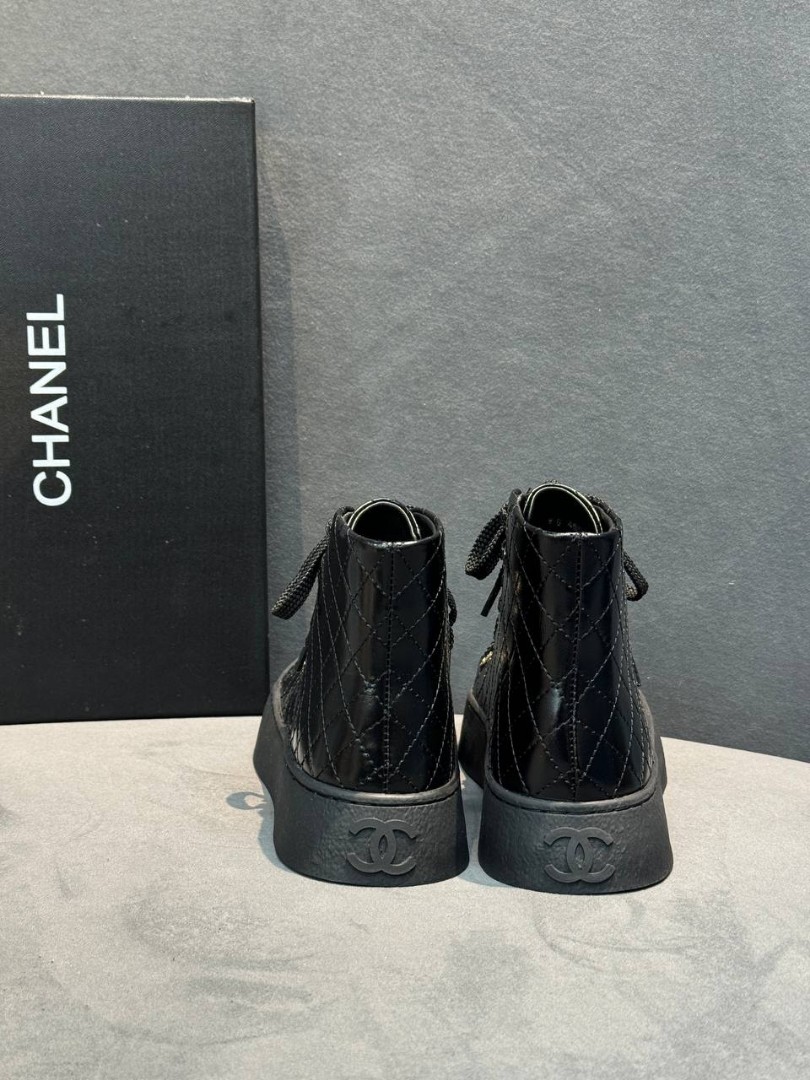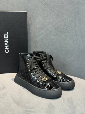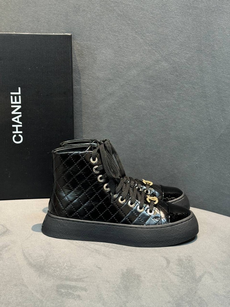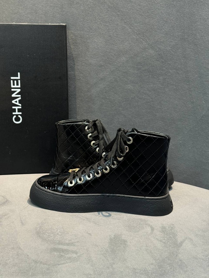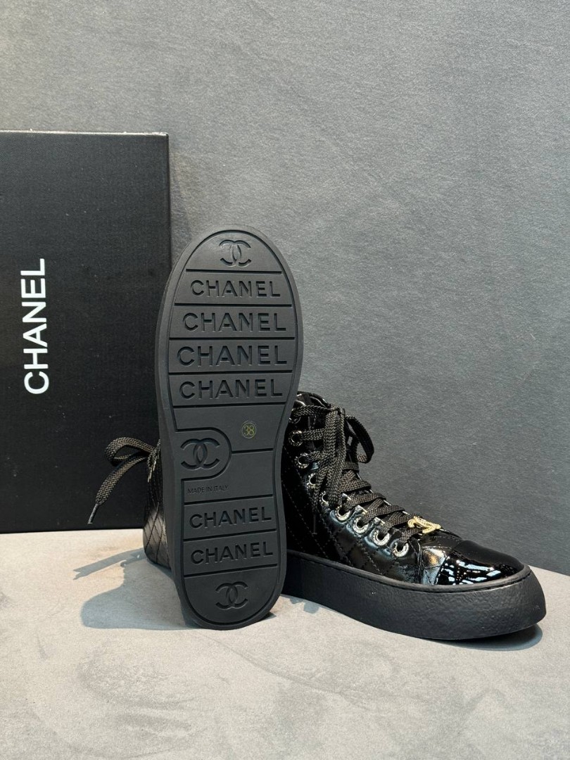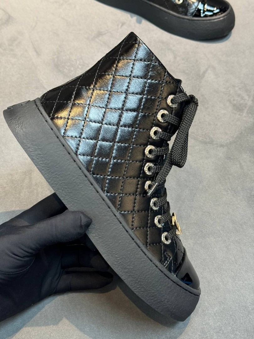 Женские кожаные кеды Chanel черные лакированные 2025